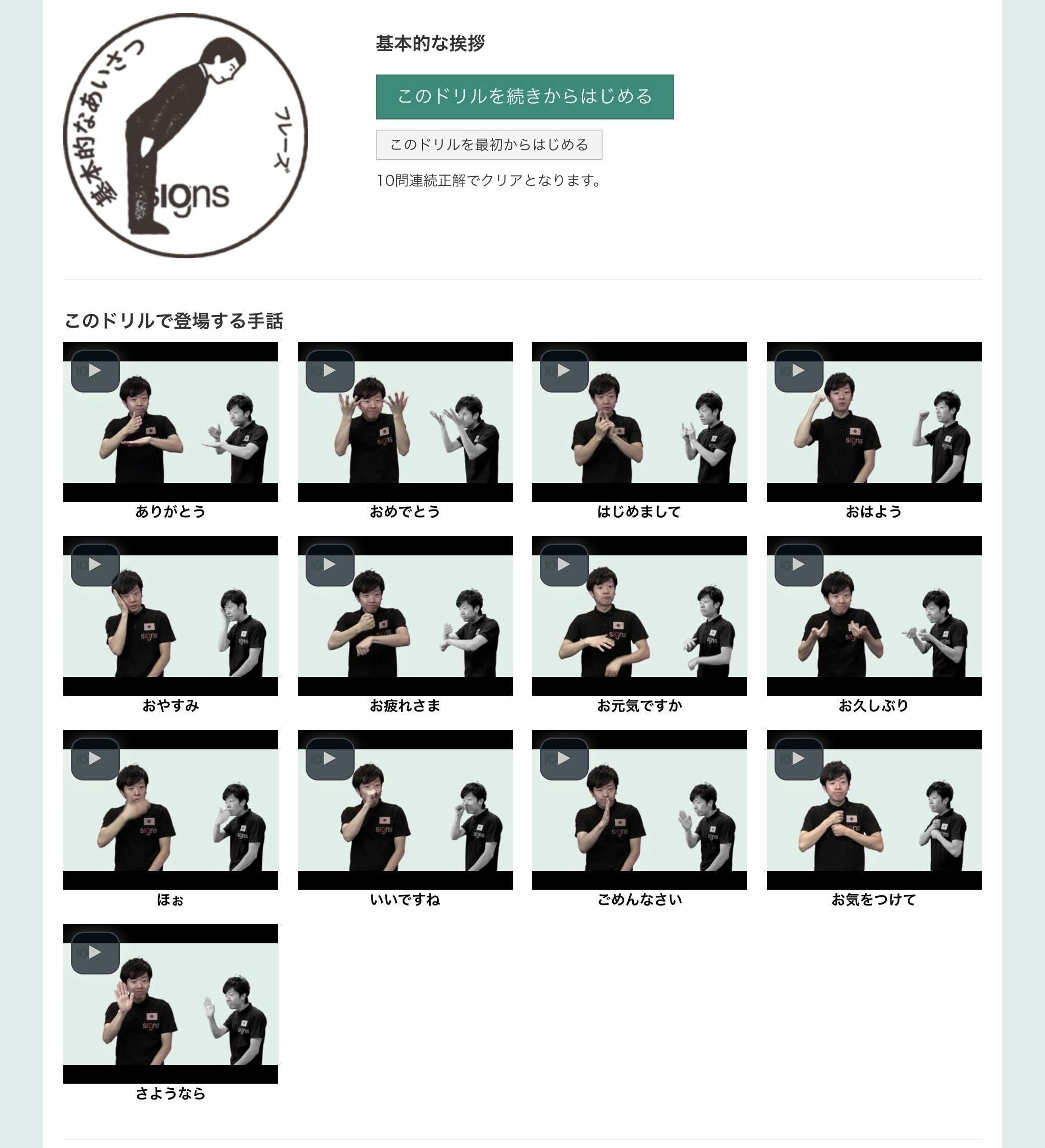 コースはリリース時点で6コースあり、今後も継続的に拡張していきます(現在16コース相当分の撮影が済んでおります)。また、手話だけでなく、ろう者や難聴者の文化や生活など、ろう者たちにまつわる幅広いコラムも追加する予定です。