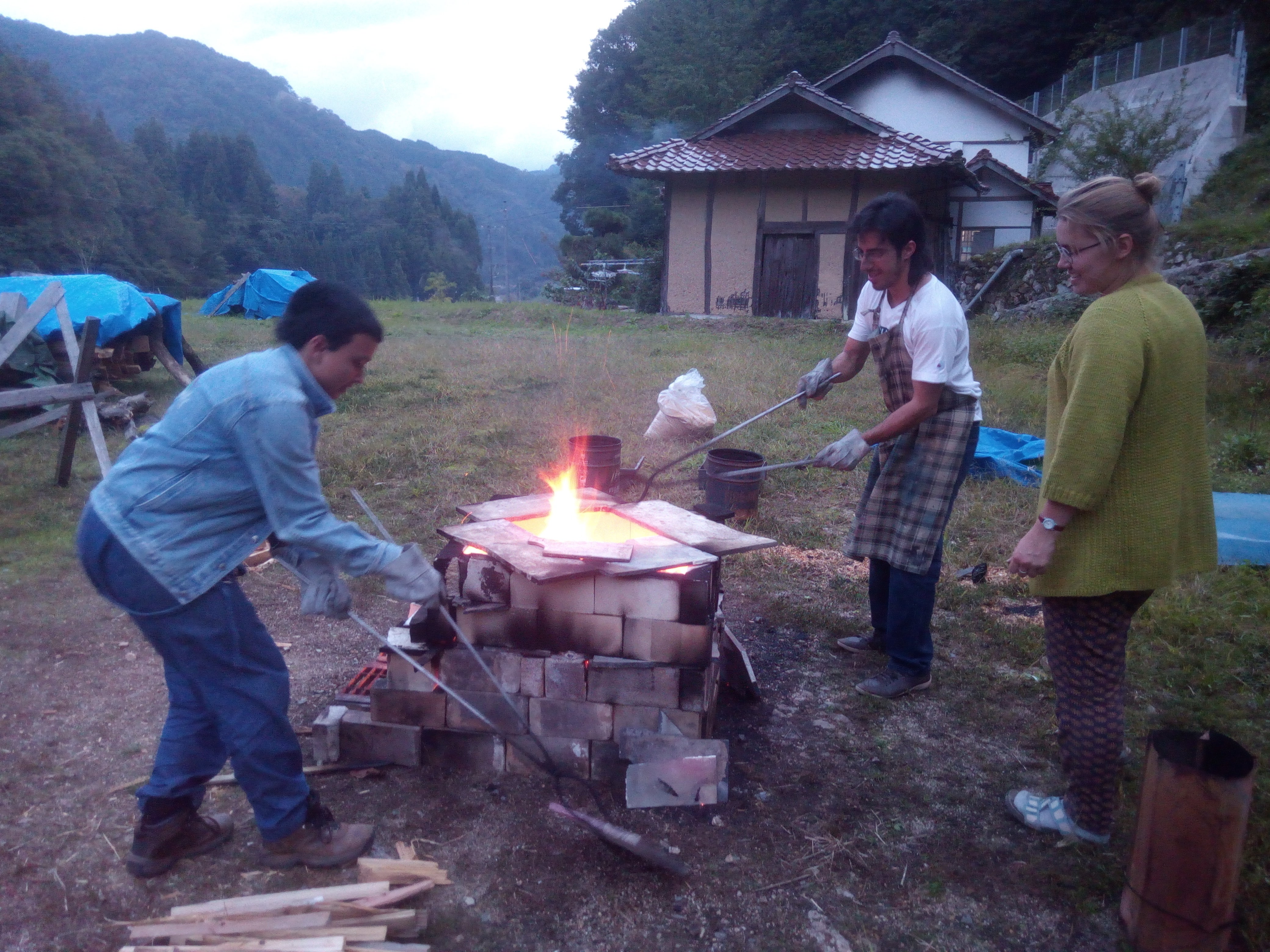 * 楽焼き。リトアニアのユラーテが指導。ブラジルの2人が焼いたが、さてさて結果はいかに? *