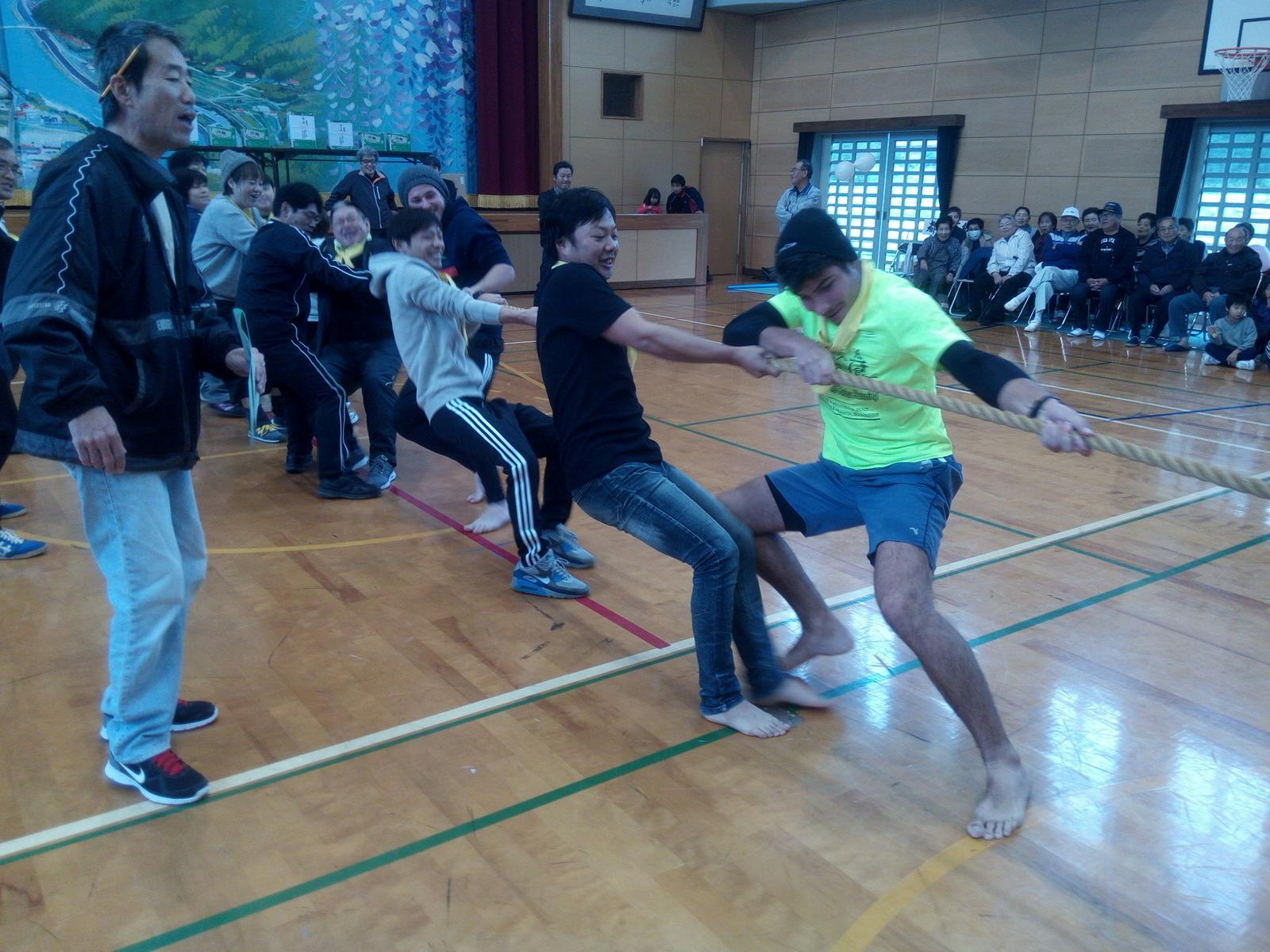 * 年に一度の集落対抗の綱引き大会に参加。上野地区は20年ぶりに、2人合わせて180キロの体重のブラジルパワーで優勝した *