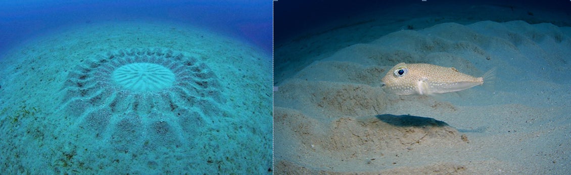 メスの産卵場所(通称ミステリーサークル)を長い時間をかけて健気につくるこのフグは奄美でしか見れません!
