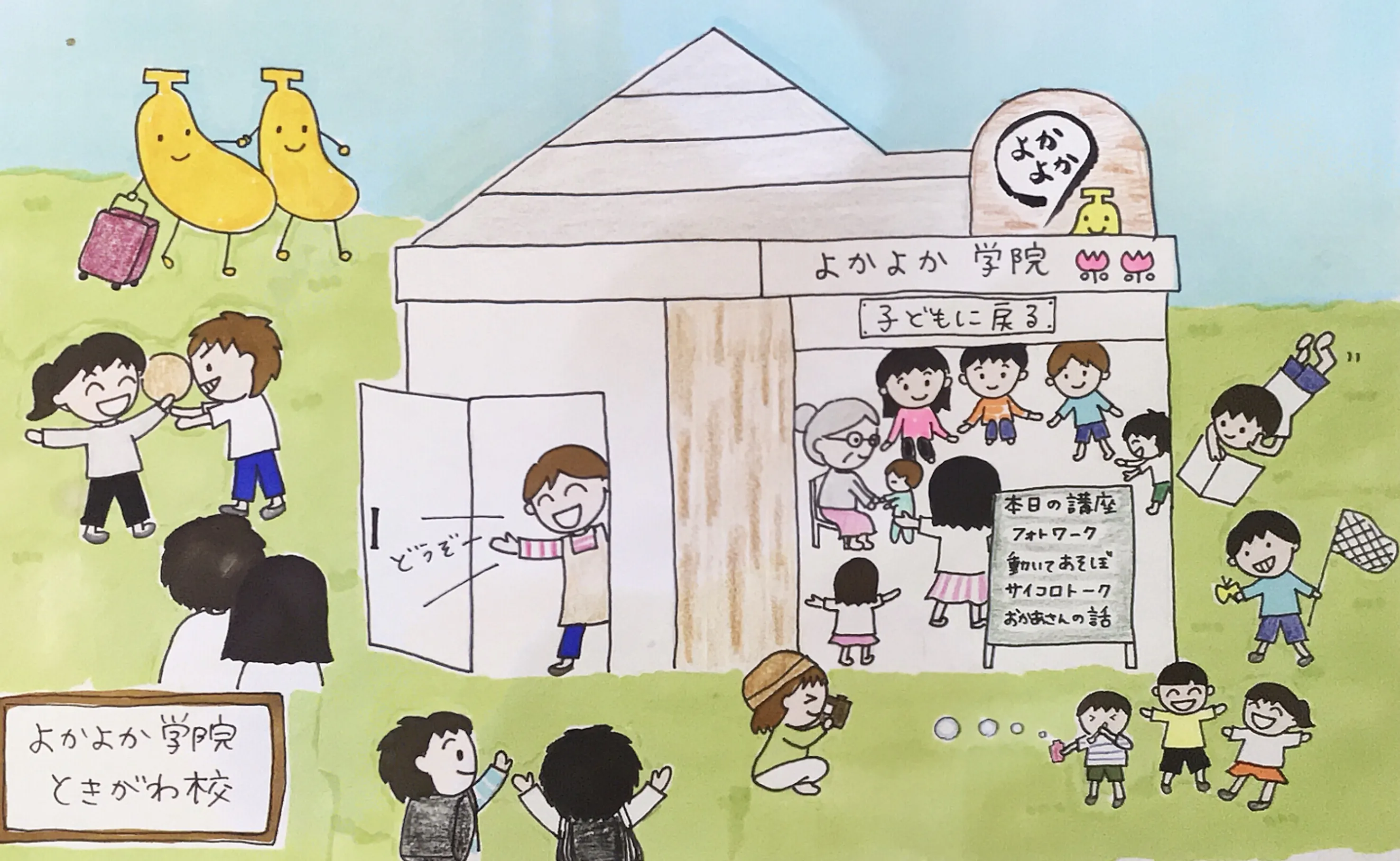 よかよか学院ときがわ町校は「おかあさんたちがつくる おかあさんたちのための おかあさんたちが子どもに戻るがっこう」です。