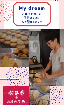 自分のお菓子でカフェをして人と繋がることで自分を幸せにしたい。そして、それをすることで来てくれる方が幸せになって欲しいと思っています。