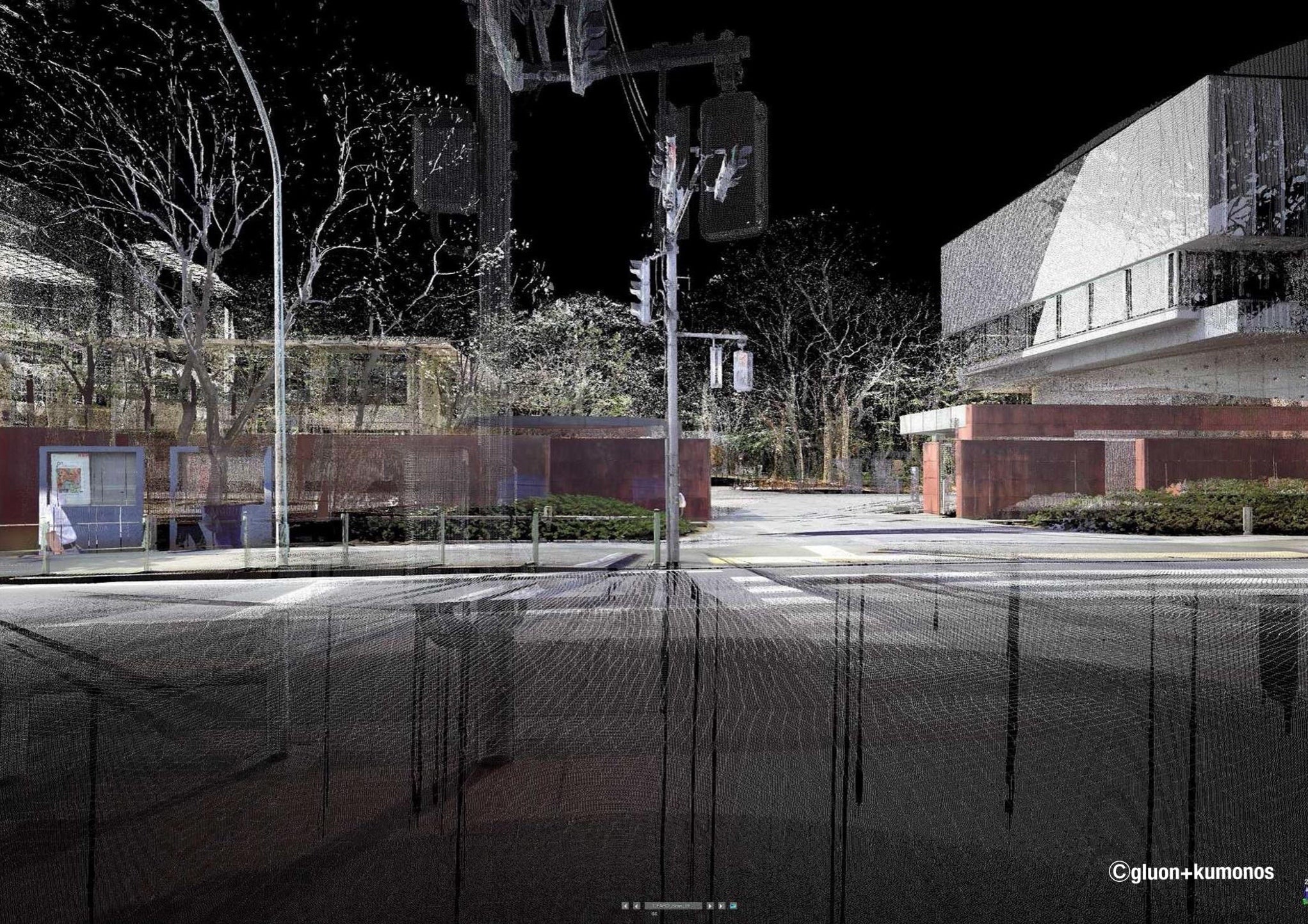 gluon+KUMONOSでは、東京芸術大学美術学部建築科の金田研究室とともに、上野にある東京芸大のキャンパス空間をまるごとデジタルスキャンし、物理的なキャンパスとデジタル空間を組み合わせた「コモングラウンド」を構築。リアルな物理空間と、デジタルの情報が重層的に存在する空間で、自律走行の検証やゲーム実装などの試験的な実証実験を試みています。