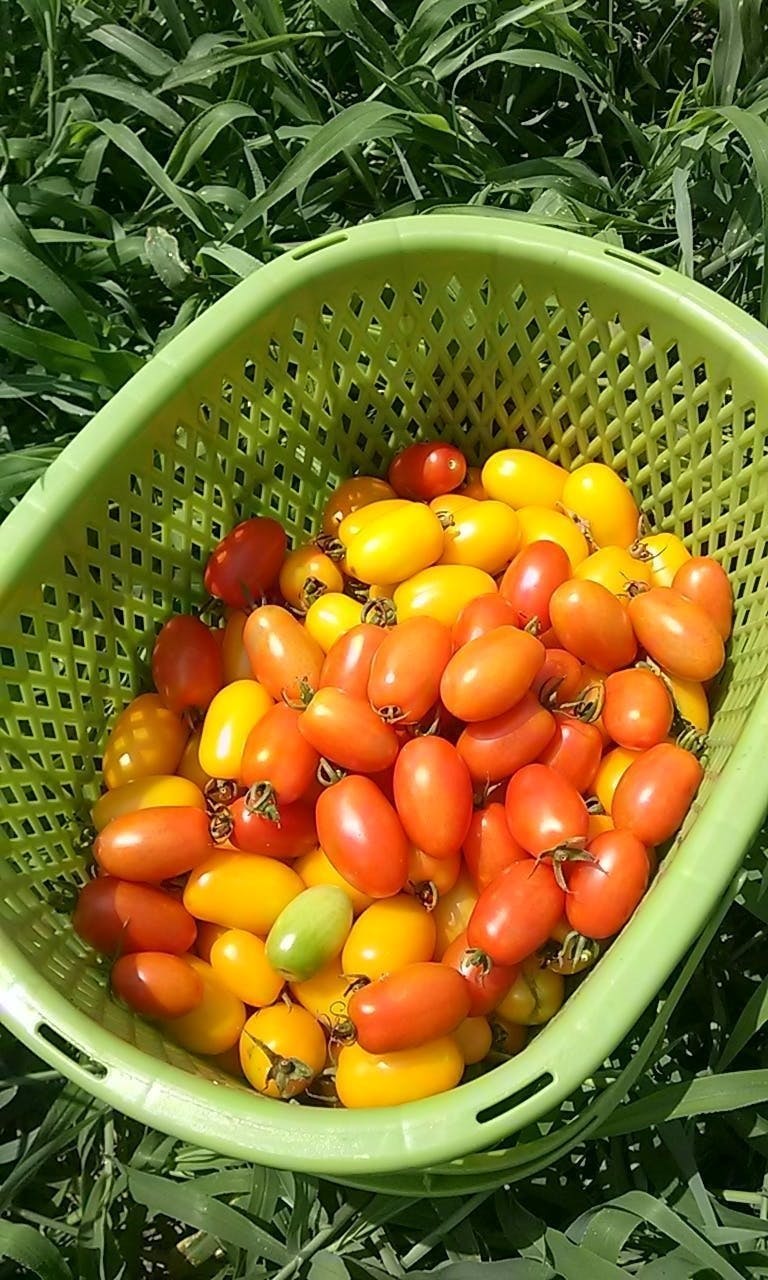 <お土産>トマト、ナス、きゅうり、などの夏野菜のお土産付きです。