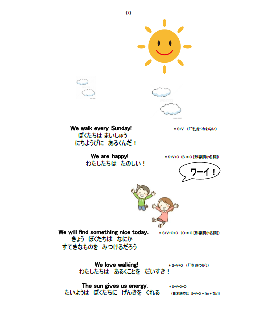 英語圏の人たちが日本語を話す場合、「です」「ます」を語尾に、助詞に該当する「前置詞」を名詞の後に置きます。ただこれだけで、彼らは日本国文法を学習することなく日本語を話します。しかし、私たち日本人は英文法を学習しても英語を丸暗記します。英語圏の人たちが日本語を話すシステムを私たちが使えば、英語を話すことは難しくはありません。このシステムをこの学習ソフトで検証しています。