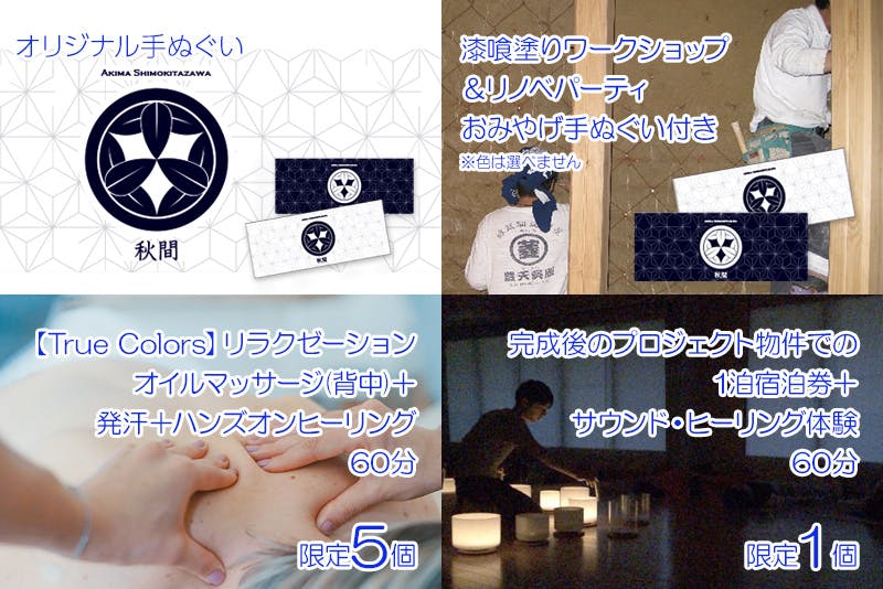 今回のプロジェクト物件である下北沢の実家2階で、僕の妻がやっていたヒーリングサロン【True Colors】が同じ場所で限定復活!!女性限定、1年間利用可能なチケットです。