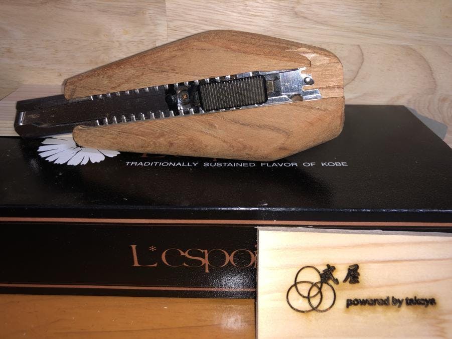 2019/05/28 13:36工房で使うサンプル品作ってみましたwケヤキ削り出しカッターです もっと見る場所