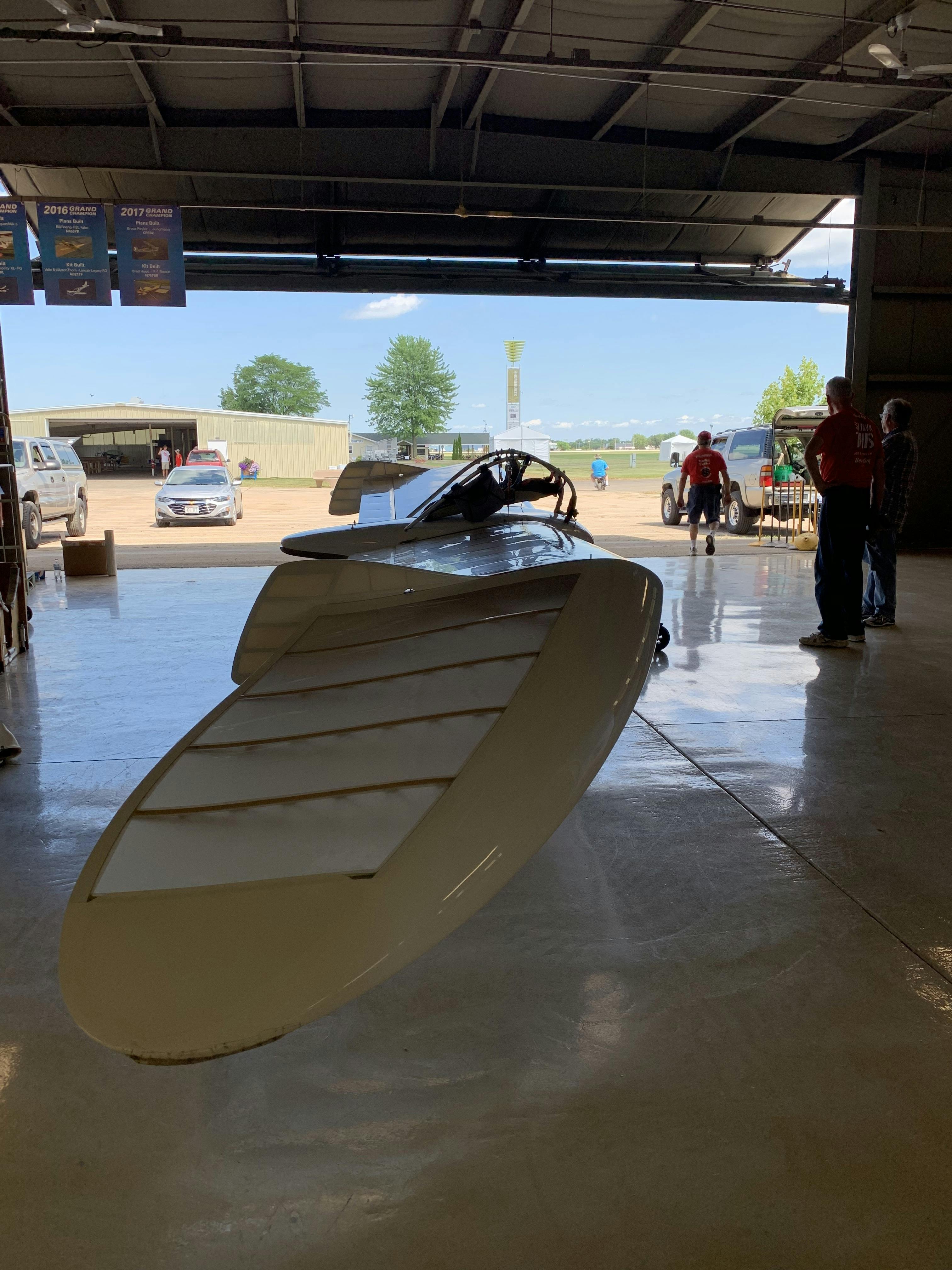 そのあと、オシュコシュにある、EAAへ。今回の会場は、Homebuilders Hangarです。自作航空機を1954年からずっと展示してきた、すごく伝統のあるハンガーです。
