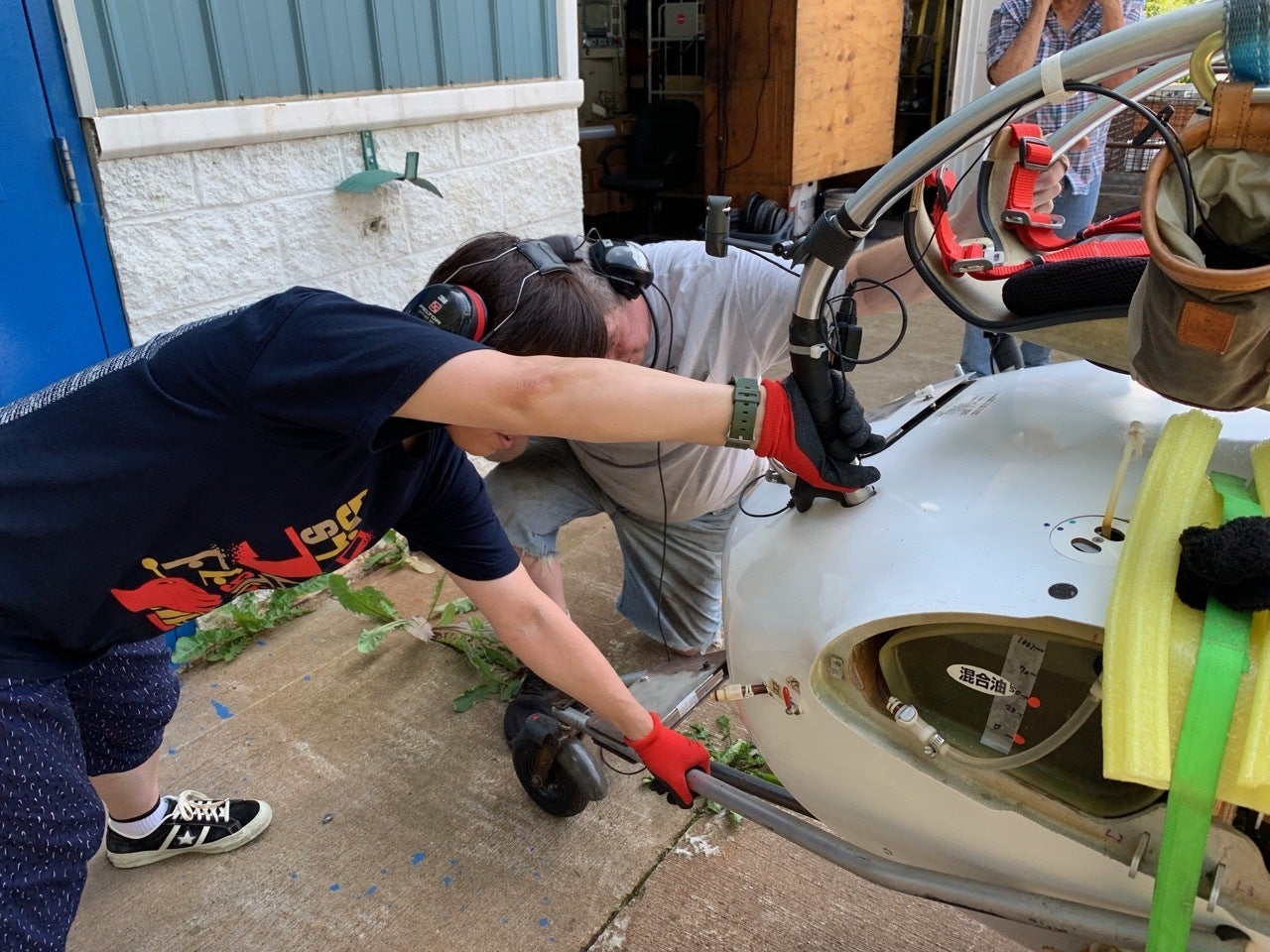 この日の目的はエンジンのテストです。外観が異常なくても、エンジンがかからないとたいへんなので。機体を組み立てる前にリーさんの工場と事前にエンジンテストをしておこうと、近くのアップルトン空港にジェット燃料(Jet-A1)を買いに行きます。