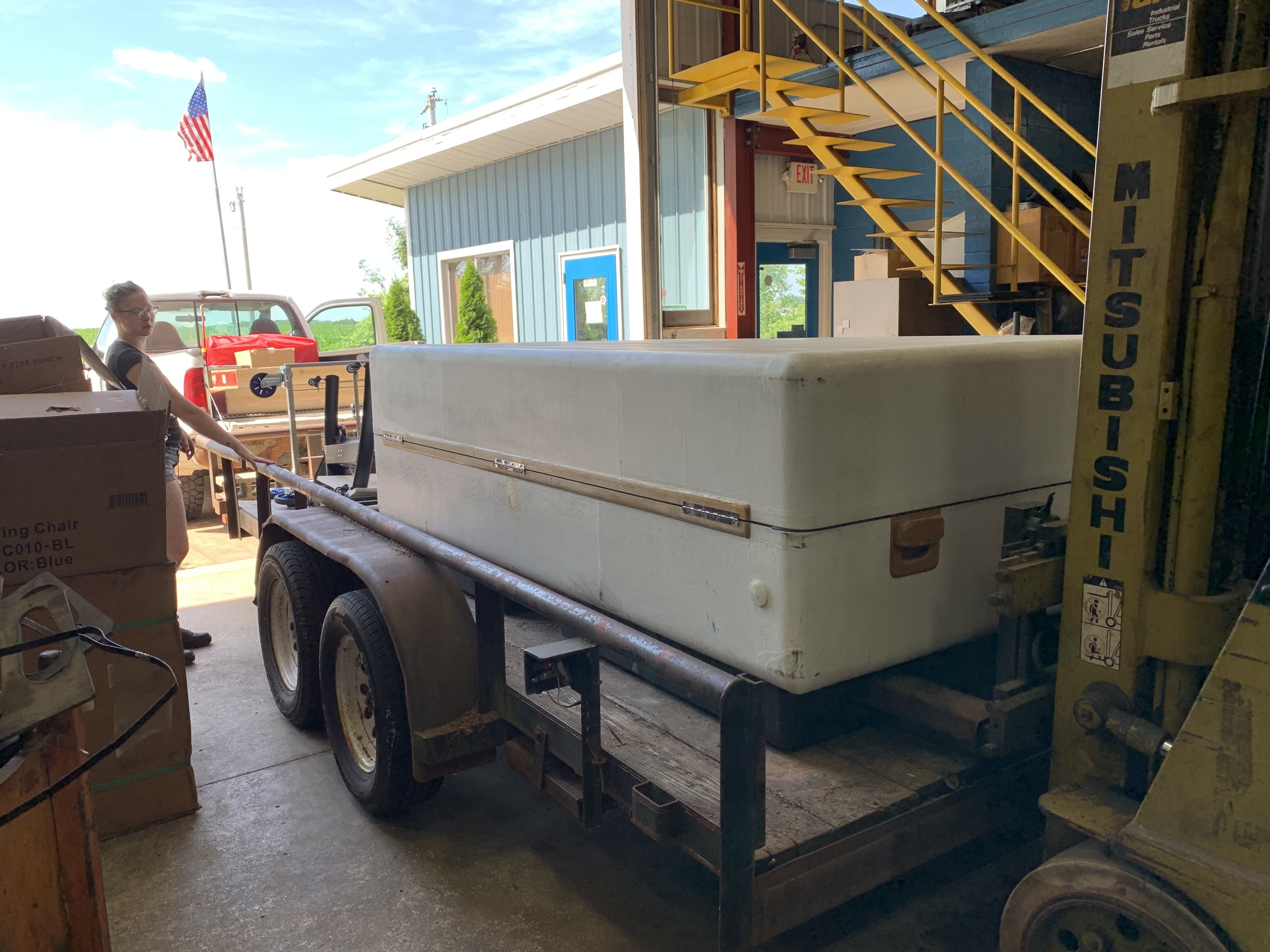 工場主なので、トレーラーもフォークリフトも自前です。頼もしい。