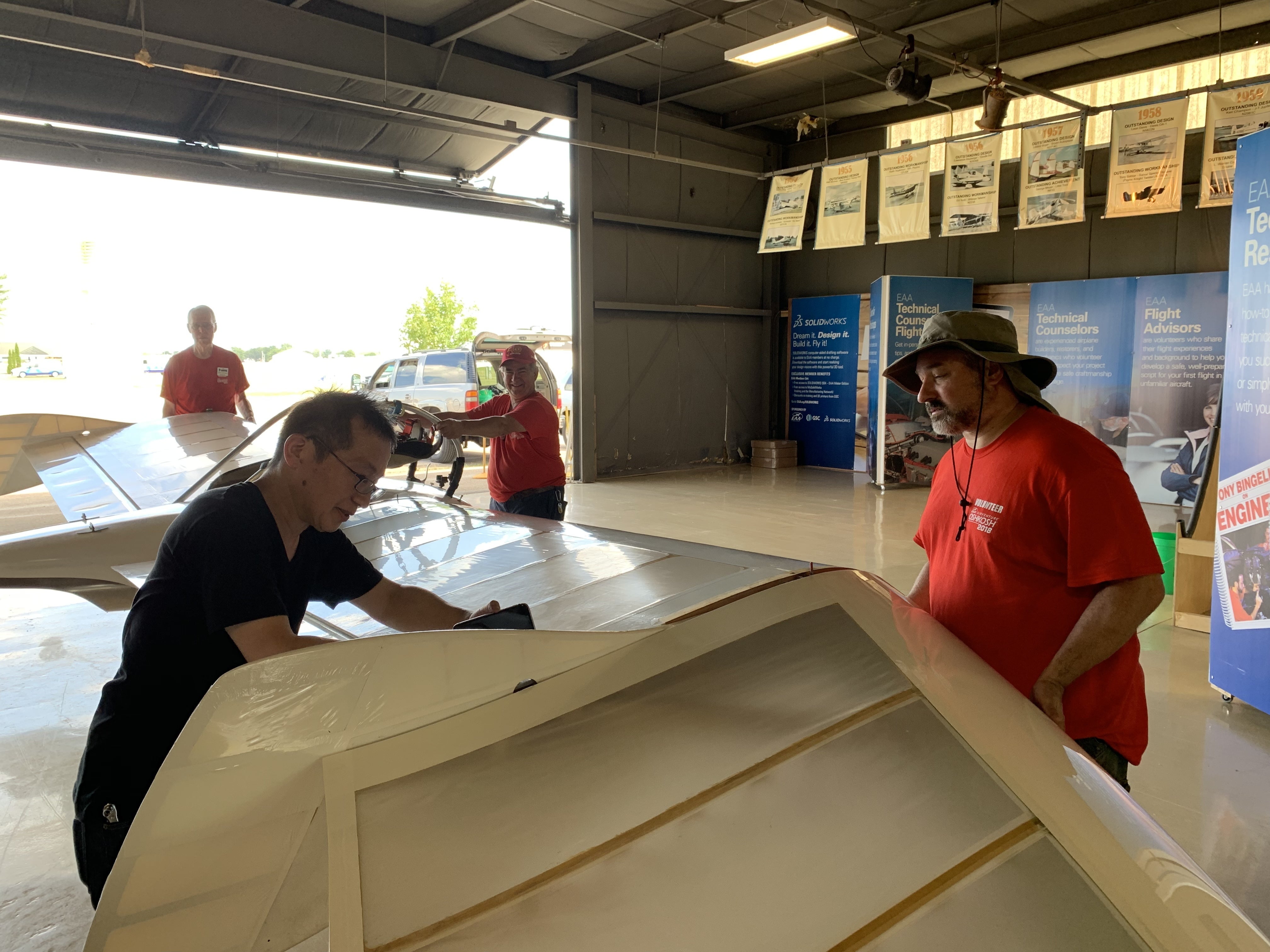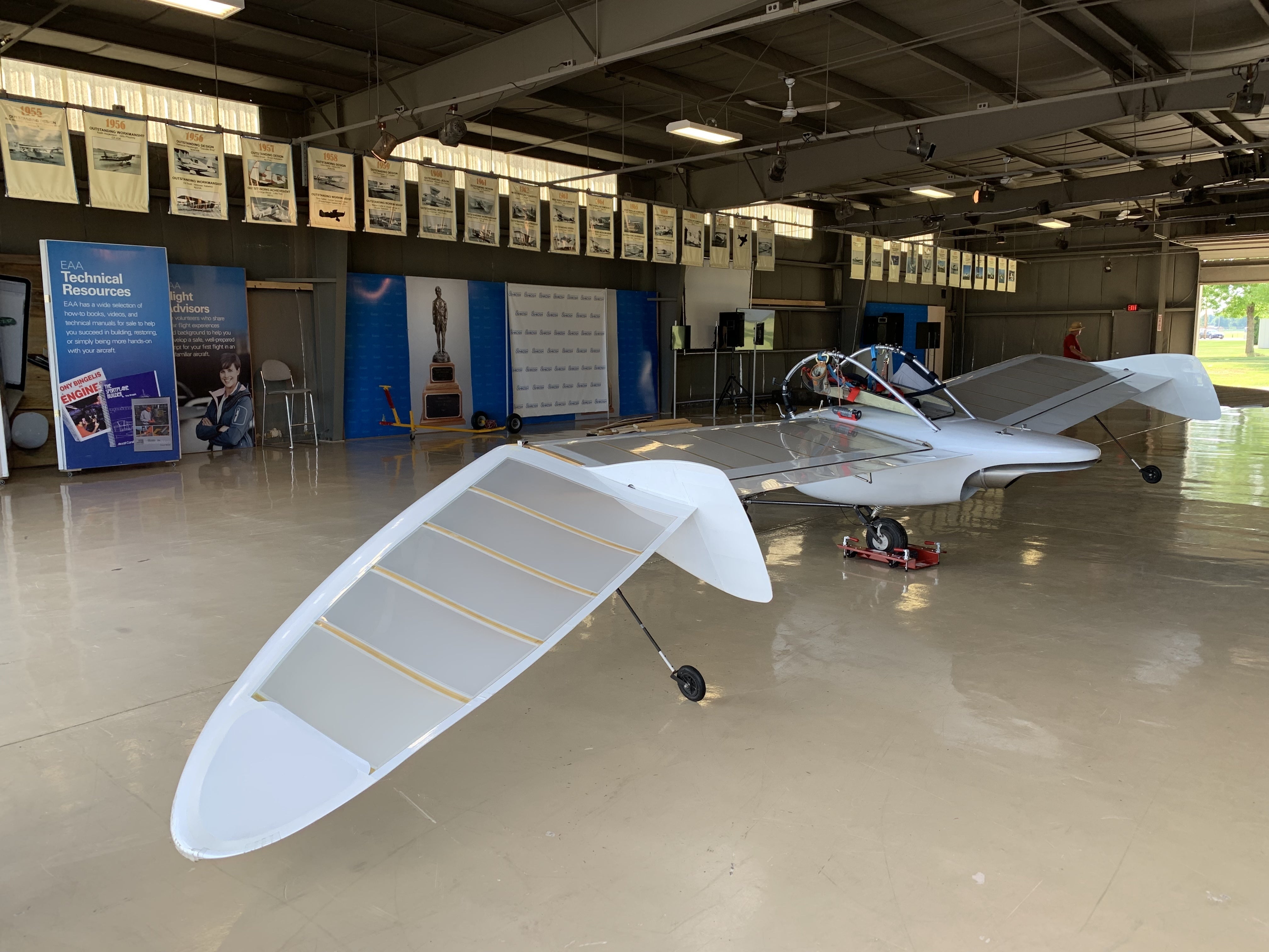 そのあと、オシュコシュにある、EAAへ。今回の会場は、Homebuilders Hangarです。自作航空機を1954年からずっと展示してきた、すごく伝統のあるハンガーです。