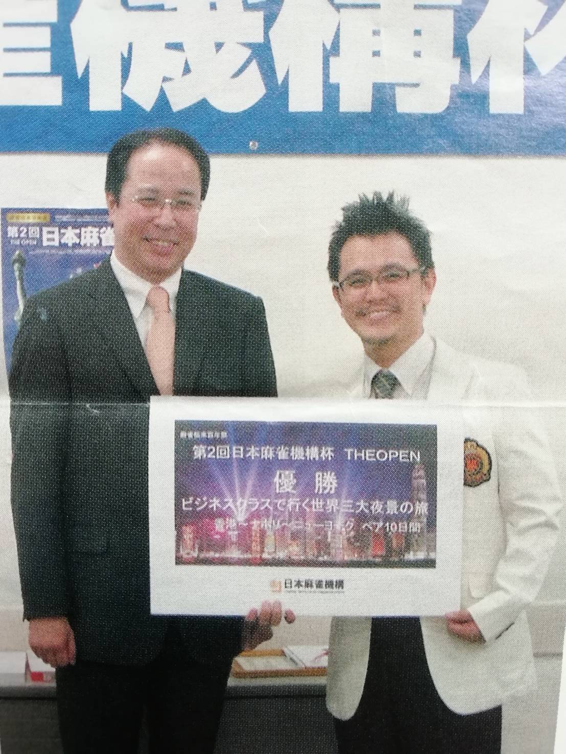 プレイヤーとしては日本プロ麻雀協会所属プロ(プロ名 日向杏介)として活動し、一度だけ日本一になったことがあります。…一度だけ(笑)(第2回麻雀機構杯)