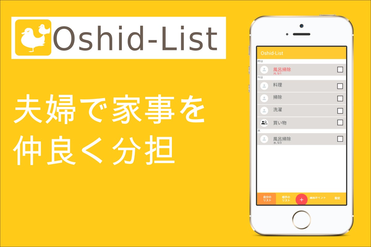クラウドファンディング終了まで残り約3週間となりました!プロジェクトを公開してから今まで、あっという間に時間が過ぎてしまい驚いています。今更ではあるのですが、アプリのイメージカラーを変更しました。元々共働き夫婦の妻向けとしていたので可愛らしいさくら色にしていたのですが、中性的なオレンジ色に変更しています。その理由として、妻ではなく夫側に寄り添った家事分担アプリにしようとコンセプトを変えたからです。私たちのリサーチ不足のせいではあるのですが、3週間前に改めて夫婦向けの家事分担アプリを調べてみたところいくつか既にリリースされているのを見つけてしまいました・・・。全く同じものではなかったものの私達が特徴と考えていた家事分担可視化の機能、ご褒美設定機能が備わったアプリも既にリリースされており、方向転換せざるをえなかったのです・・・。ただ、それはそれでよかったのかもしれません。改めて他の家事分担アプリを使ってみて、実際に聞いた共働き夫婦の意見を思い返してみたところ、なんとなく男性側の息苦しさが感じられました。片方(一般的に夫)の家事分担量が少なくて片方に負担が偏っているにしても、強制的にやらせるのではなく二人が多少なりとも同じ意識を持って協力しないと家事分担はうまくいかないでしょう。そこで、"Oshid-List"は夫側に寄り添う、結果的にお互い気持ちよく家事分担が出来て妻側にも嬉しいアプリにしたいと思います。とはいってもその結果変えたものは、アプリのイメージカラーと家事分担可視化の機能くらいです。家事分担可視化の機能がなくなってしまうとそもそもの家事分担問題を解決することは難しいと考えているので、さりげなくお互いの家事分担量を見えるようにします。笑イメージとしてはプロジェクト本文の説明画像の通り、家事を完了してポイントが溜まると自分のどんぐりがどんどん山積みになっていくイメージです。さりげなくと言えるかはわかりませんが、はっきりとお互いのポイントが分からないようにしようと考えた結果こうしようと思っています。という訳で!コンセプトを変えたりしたもののようやくアプリの原型(β版とまでは言えない?)は出来ています!まだ見た目や家事分担可視化の機能は完全ではないものの、家事を二人で共有できるToDoリストとしての機能は完成しています。ペースとしてあまり早いとはいえないものの、7月リリースに向けて引き続き頑張りますので見守って頂ければ嬉しいです。また進捗報告します!!