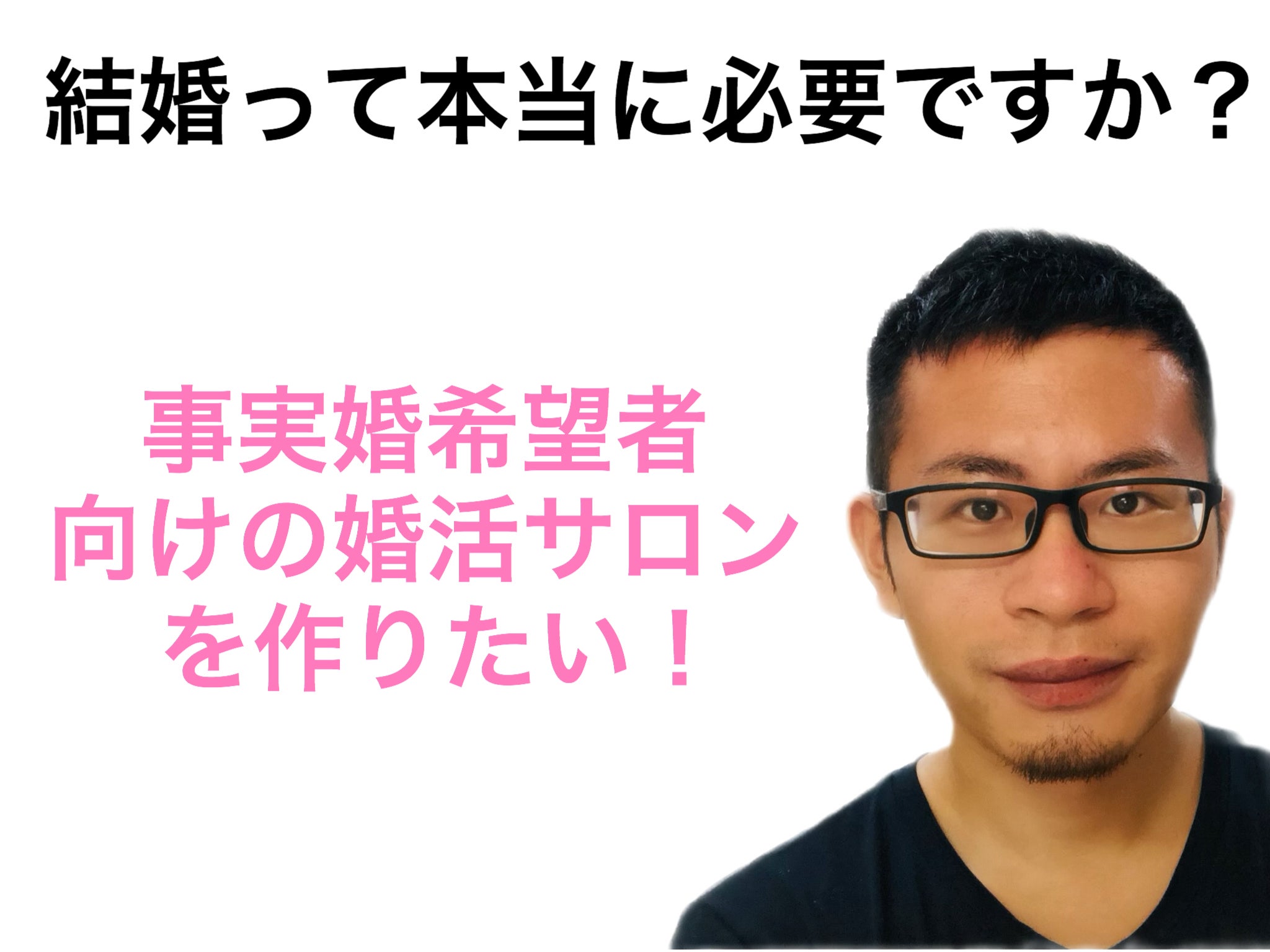 私は以前なんとなく結婚したかったので婚活パーティや婚活アプリで相手探しをしていました。しかし婚活を続けていくうちに法律でお互いを縛り付ける結婚という制度そのものが現代社会にそぐわないのでないかと疑問に感じるようになりました。そもそも私が婚活をしていたのは日々の生活を一緒に楽しめるパートナーが欲しかったからであり、まだ子供は欲しくないかなと思ってた私は必ずしも結婚にこだわる必要はないなと気づいたのです。結婚とは、昔の日本において家を守り子孫繁栄のために必要な制度でした。しかし家制度の崩壊、離婚率の増加、女性の社会進出や人生の多様性が叫ばれる現代において、パートナーを得るために必ずしも結婚を選択する必要はありません。社会的に不要になった制度が惰性で残り、神聖視されているだけなのです。そこで私は男女ともにある程度自由がある「事実婚」という選択に注目しました。メリットやデメリットに関しては簡単に以下に記します。