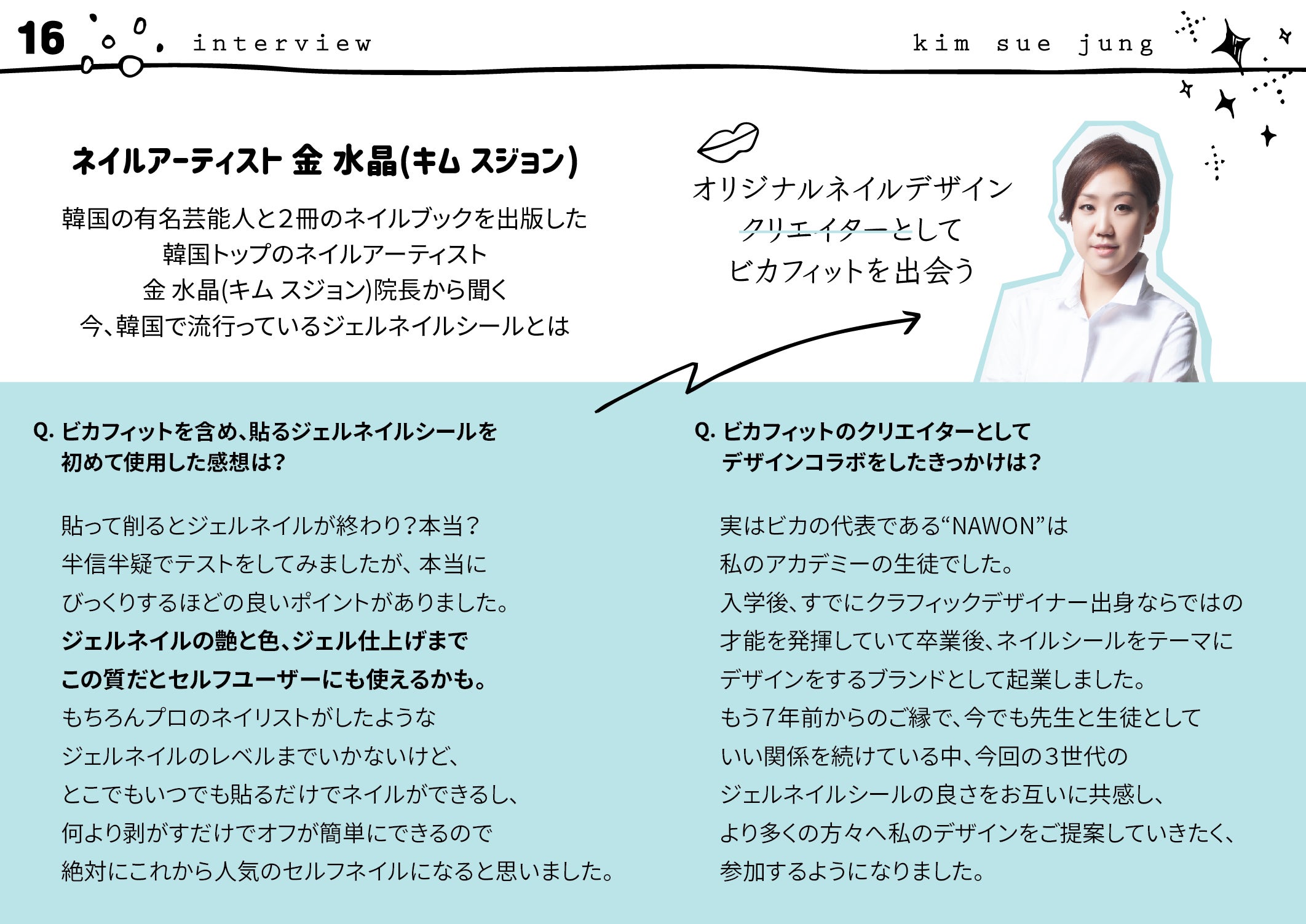 韓国を代表するトップネイリスト”金水晶院長”の実際のネイルデザインをシールのデザインに。