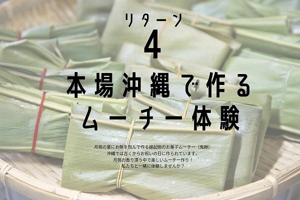 ●ムーチー作り体験リターンは2019年8月25日(日)を予定しております。場所等詳細は決まり次第ご参加の方にお知らせいたします。