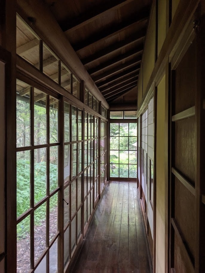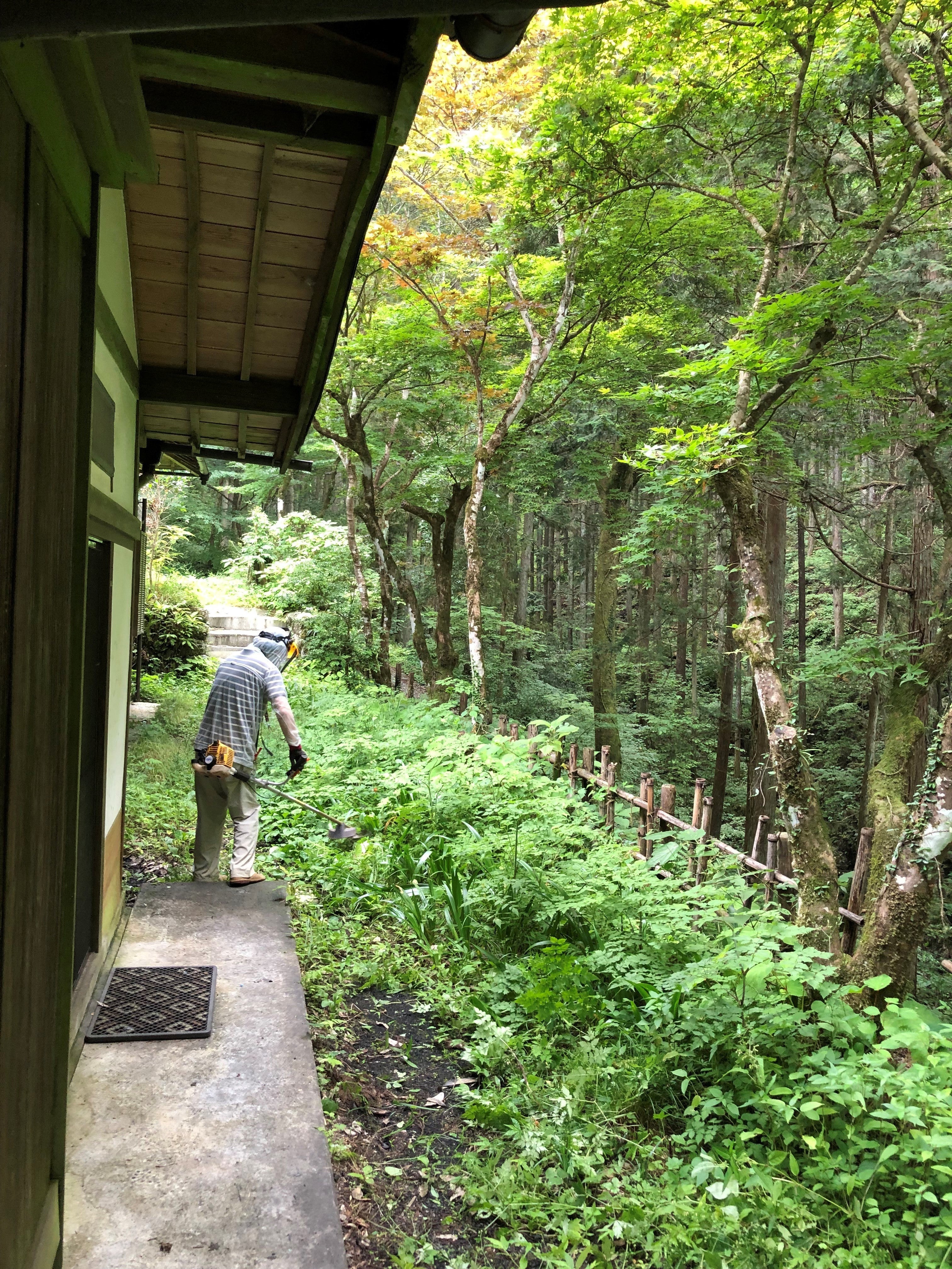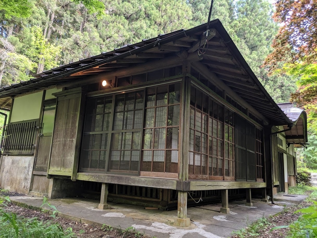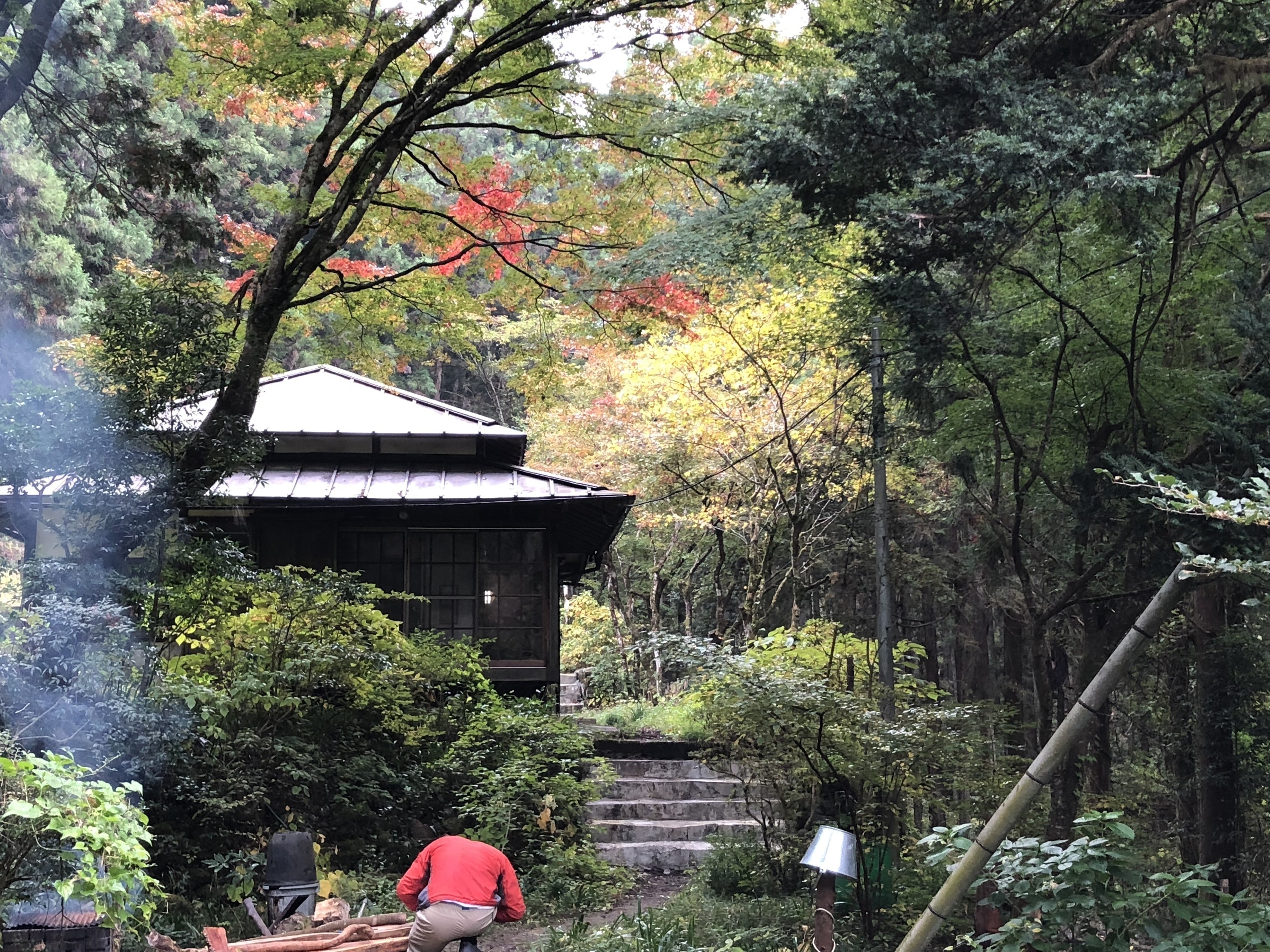 古民家はどうやら昔の道場だったようです。木々の擦れ合う音や目の前の滝の音が聞こえ、緑の匂いに包まれた別世界です。