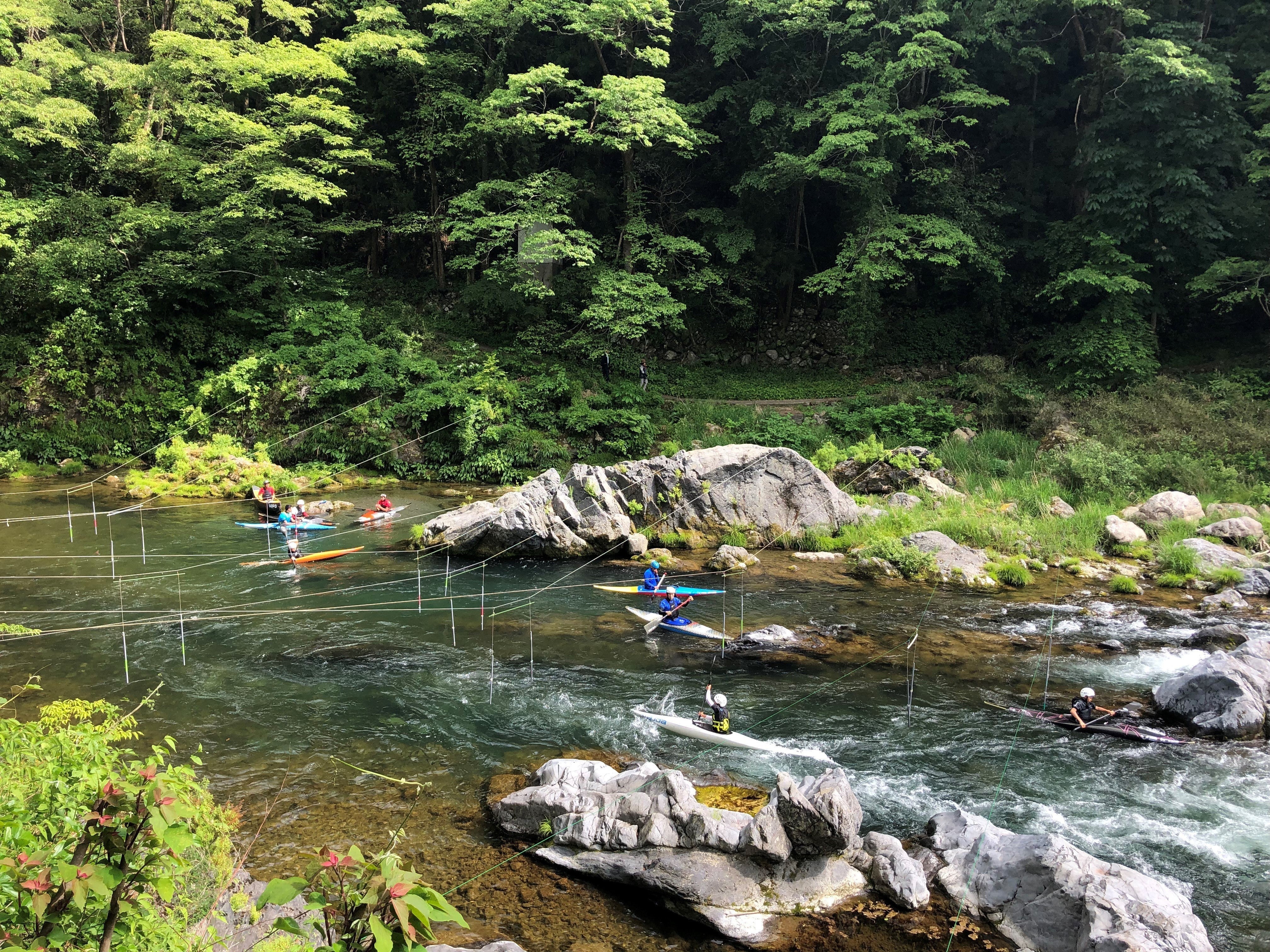 関東の霊山として信仰されてきた武蔵御嶽神社一の鳥居の内側で、日本名水百選に指定されている「御岳渓谷の水」が目の前に流れています。