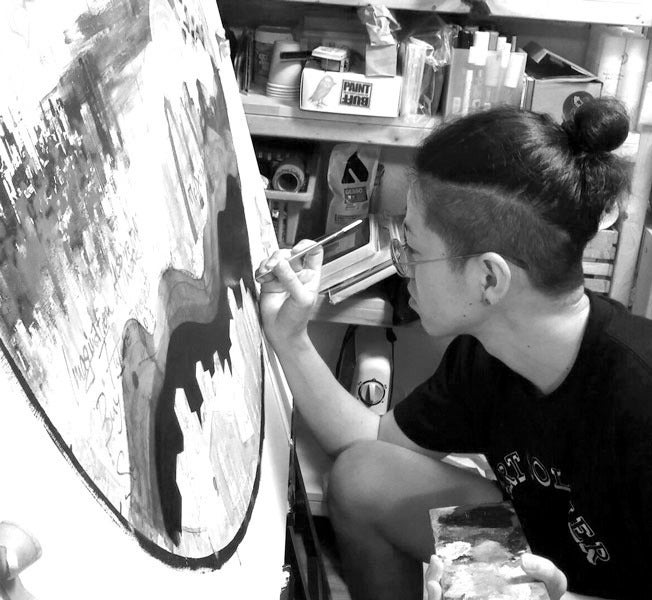 DENPA |1983年沖縄生まれ。街や都市の風景に人の心の動きやそれぞれの人生模様を投影し、抽象的に表現する。アートイベントのオーガナイジングやストリートアートをコンセプトにしたギャラリー兼ショップ”Stock Room Gallery” の主宰を務めるなど、一般社会へのアートの普及にも力を注いでいる。Brooklyn(NY)のOuchi Galleryでの個展開催、沖縄県伊計島周辺地域で毎年開催されているイチハナリアートプロジェクトへ参加、avex南青山の社屋内壁に幅10mの壁画を制作、沖縄銀行コマーシャル出演など、活動エリアを問わずインターナショナルな活動を見据えている。