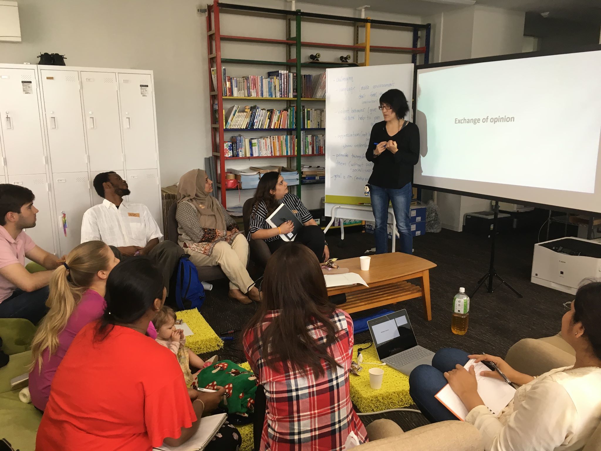 プラン発表しない先生たちが子ども役となって、ロールプレイングを実施。研修の最後にはMovEnglishの共同代表であるターニャがファシリテーターとなり、プランの改善点や良かった点をまとめました。