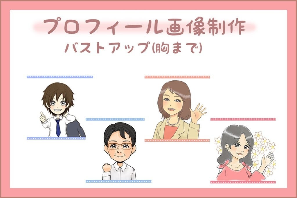 HP、ブログ、Facebook、Twitterなど、SNSでご使用いただけるプロフィール画像(バストアップ(胸までのイラスト))を制作いたします。