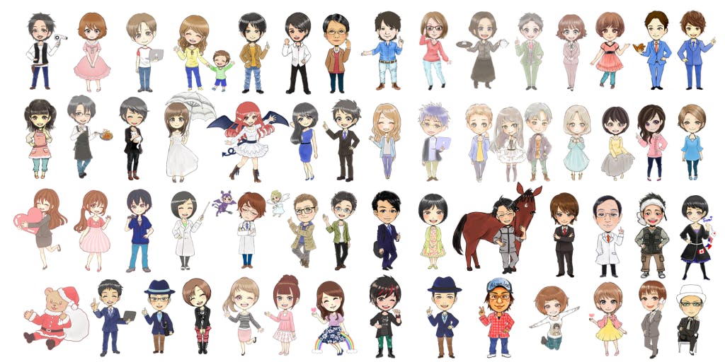 主に個人様のプロフィール画像などを制作し、 のべ100名様、追加ポーズなども含めると200体以上のキャラクターを制作してまいりました。