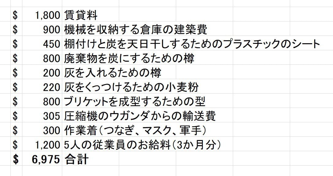 私たちが作っているのは、煙のでない薪(ブリケット、再生炭)です。私とNYにいる友人は資金調達と技術を調べて送る役割をしています。現地にいる彼らは、ブリケットを作っています。