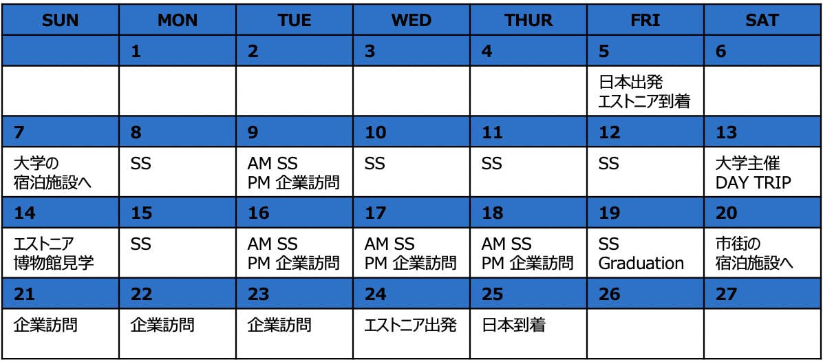 ※SSはサマースクールのことです。また、訪問先起業についてはLIFT99、TransferWise、Cybernetica、Agrello、Jobbatical、Funderbeam、blockhive、Playtech、Veriffを予定しています。