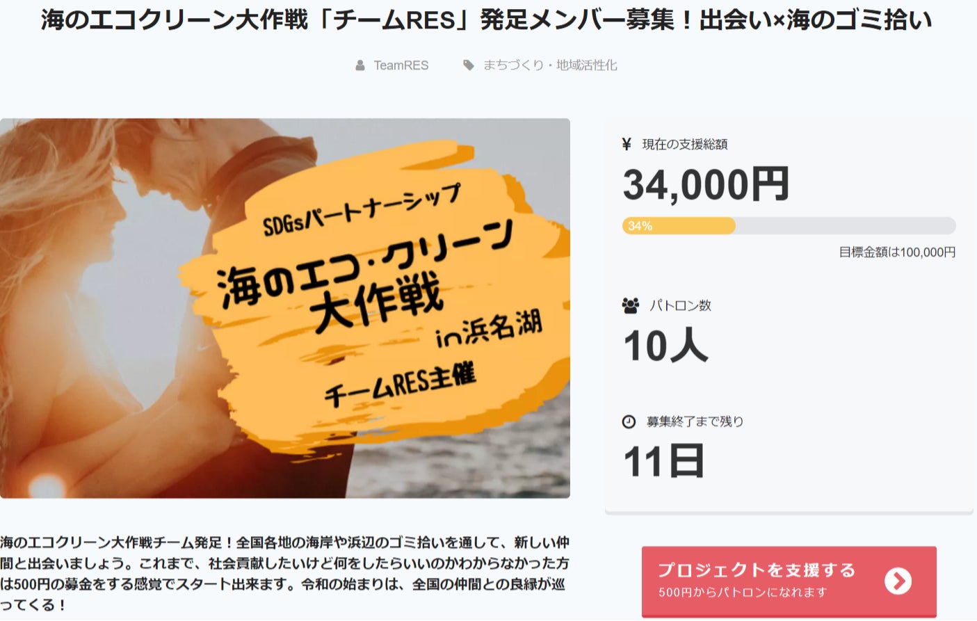 SDGsを軸にパートナーシップについて考える私たちの活動に賛同いただけましたらぜひ、ご支援をお願いいたします。リターンの中から「海のエコクリーン大作戦イベント協賛」をお選びいただくことで、チームRESfacebookページとTwitterにて2019年9月末まで紹介させていただきます。※10000円