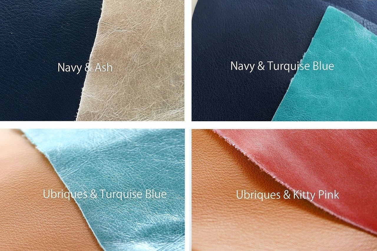 UbriqueとUbrique Navyはノートカバーの外側に、内側はそれぞれエトネレザー(Ash, Turquise Blue, Kitty Pink)を合わせます。ファスナーは、内側の革の色と同色です。