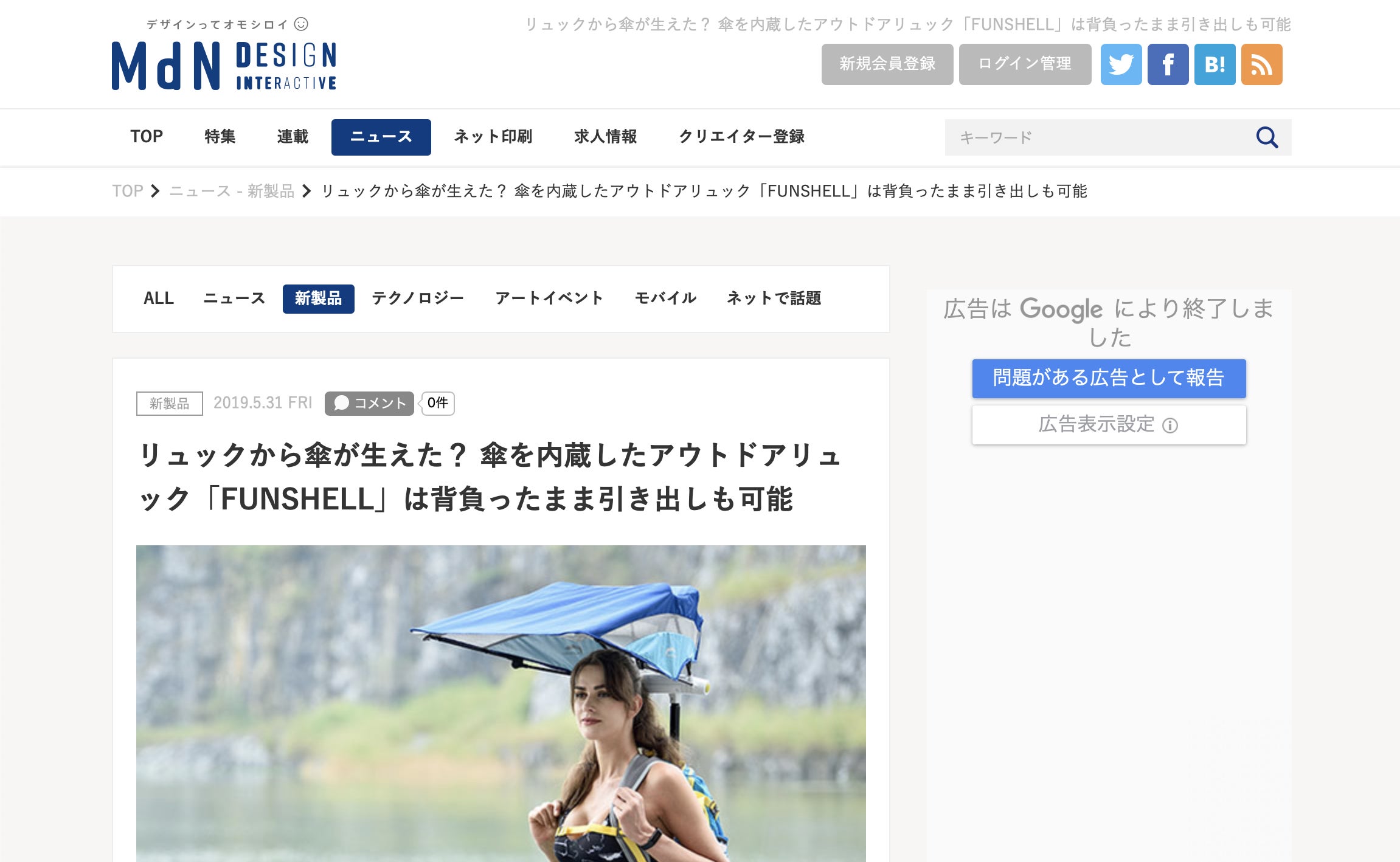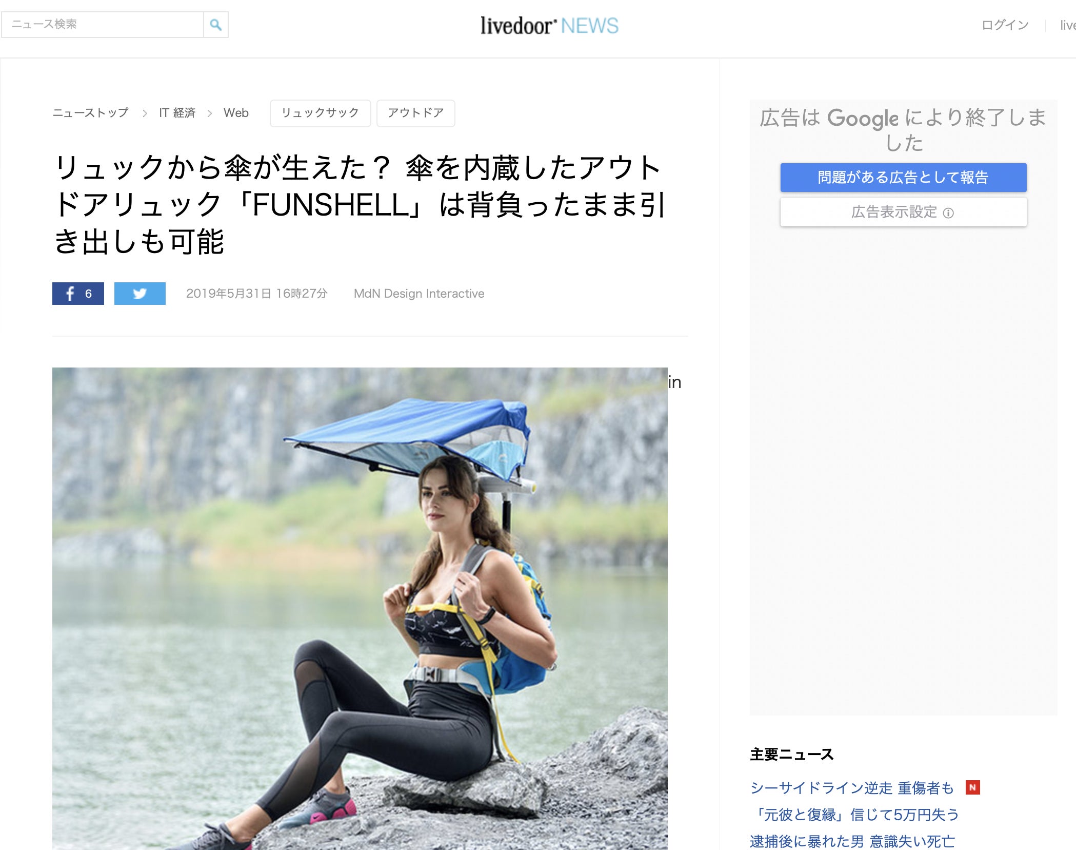 【メディア掲載】「livedoor NEWS」にて、傘×バックパック(FUNSHELL)を掲載して頂きました。