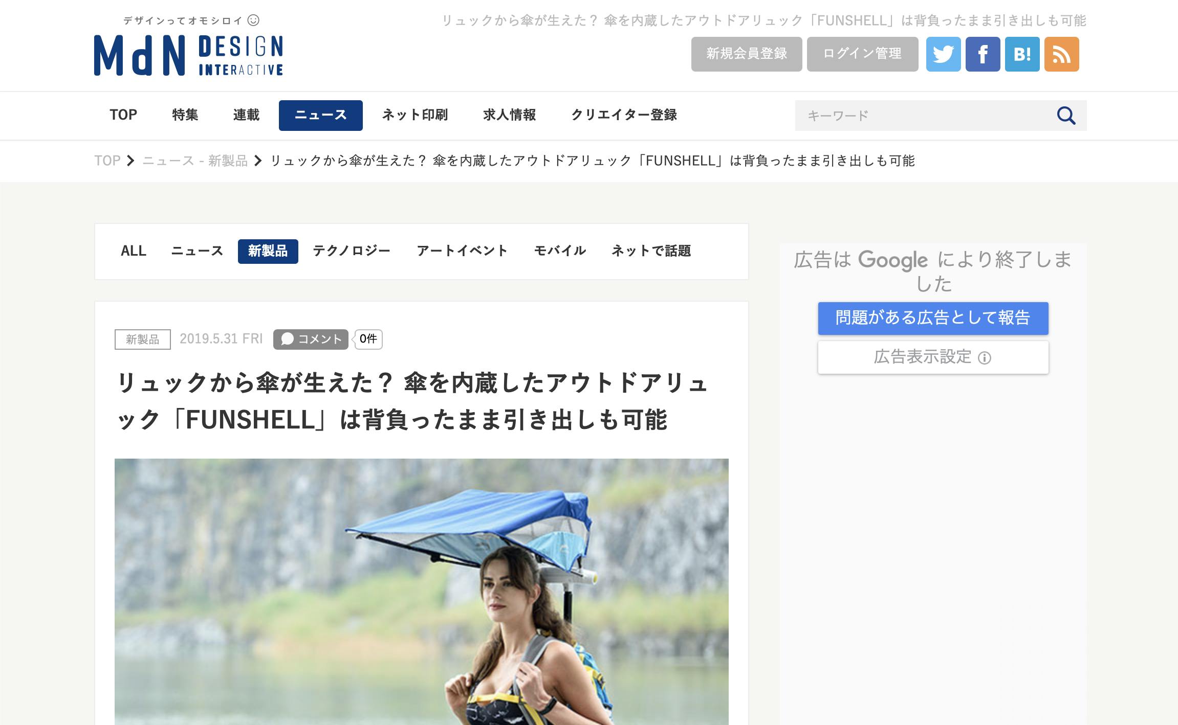 【メディア掲載】「mdn」にて、傘×バックパック(FUNSHELL)を掲載して頂きました。
