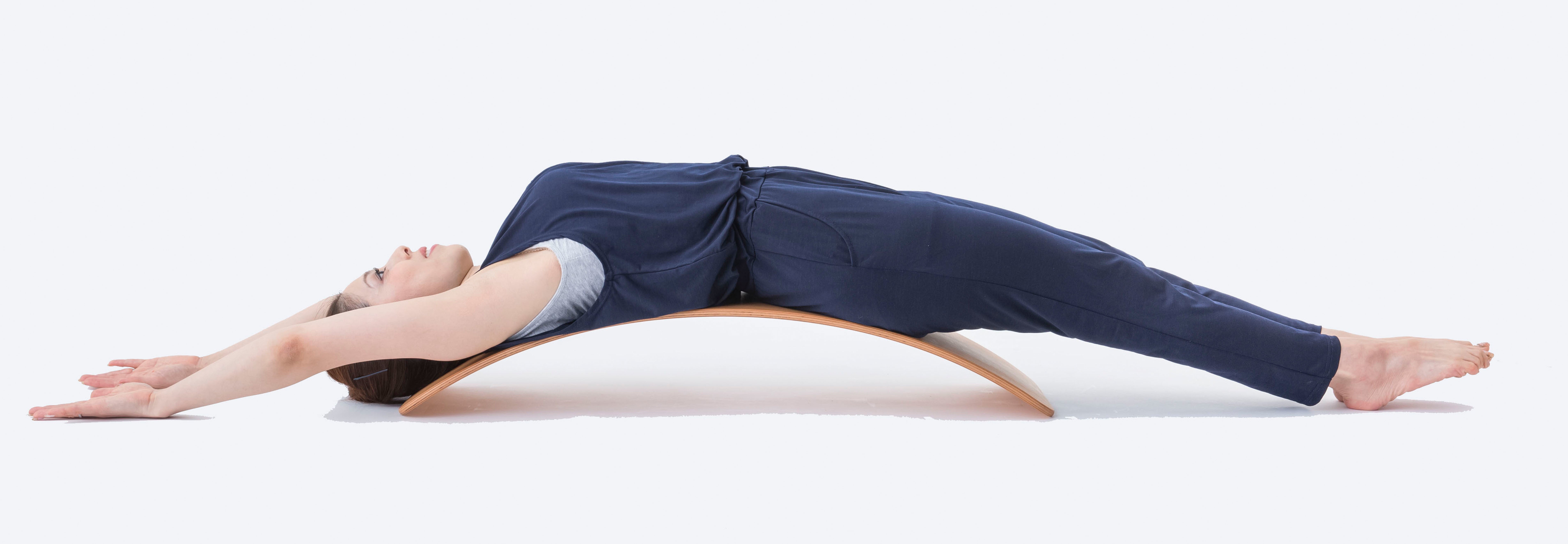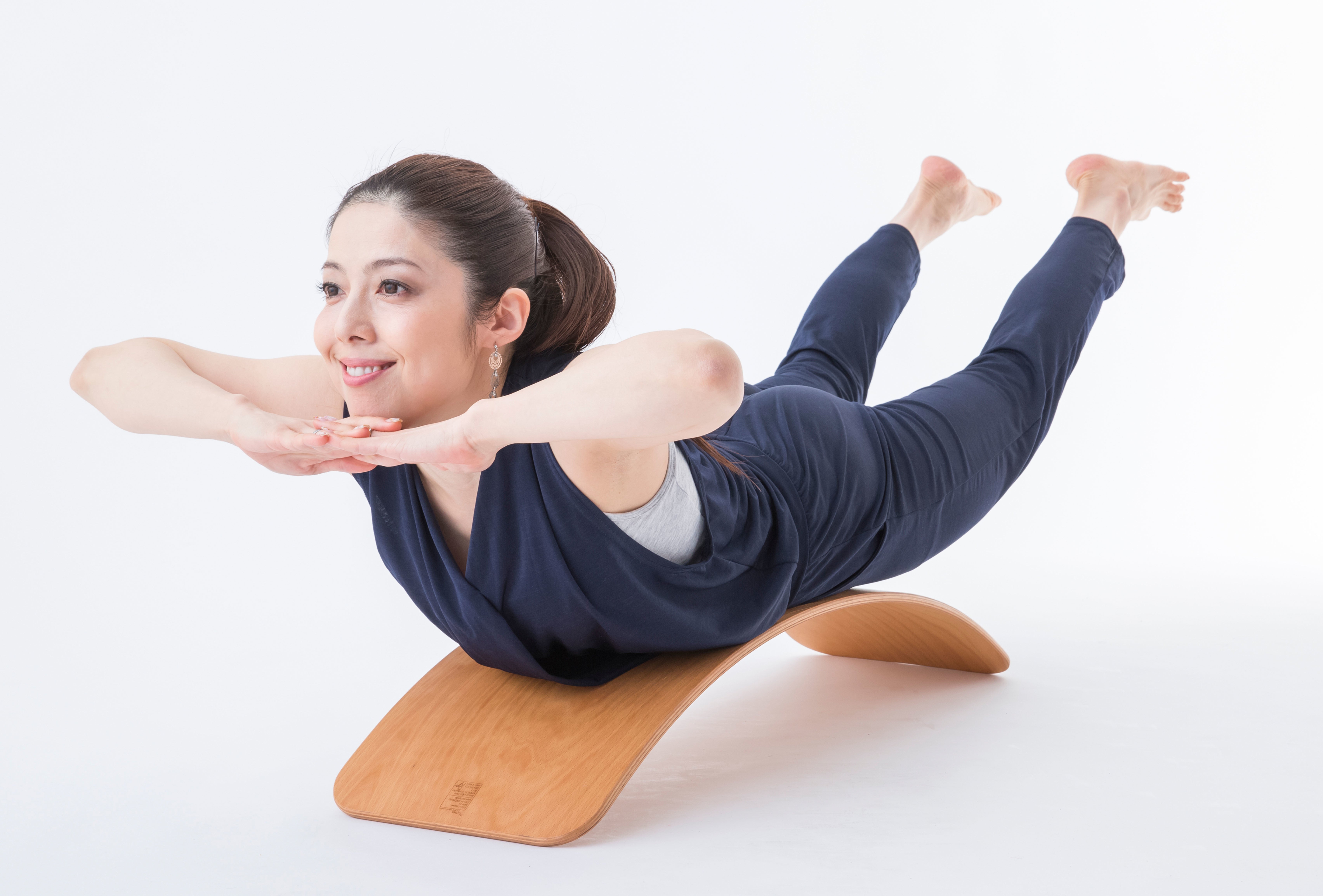 ダスブレットの上で反って、背筋とヒップを鍛えましょう。