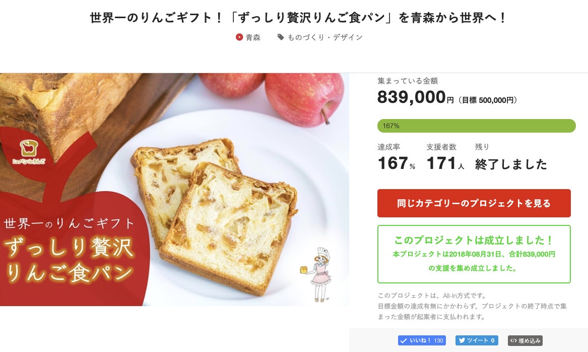 2019/07/18 16:12みなさま、クラウドファンディング限定販売プロジェクトへのご支援ありがとうございました。催事、イベント等でバタバタしておりましたが、クラウドファンディング支援者さま向けの「ずっしり贅沢りんご食パン」は無事に生産や配送準備が進んでおります。共有が遅くなり申し訳ありません。最新の状況で、7月23日〜26日の間での配送手配となる予定でございます。青森からりんごの美味しさがぎゅっと詰まった最高の「ずっしり贅沢りんご食パン」をお送りします。引き続き、どうぞよろしくお願いいたします。 もっと見る