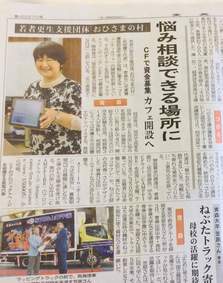 昨日付けの読売新聞青森版、東奥日報に記事が掲載されました。