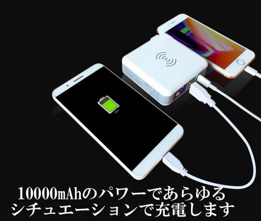 10000mAhバッテリーを搭載しており、同時に最大4台の機器を充電することが出来ます。