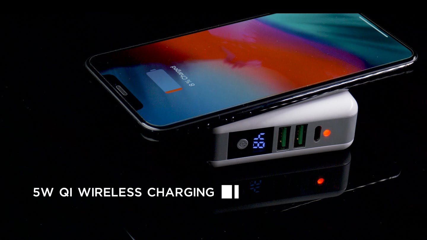 10000mAhのバッテリーを搭載することにより、iPhone8なら約3.5回、iPhoneXRなら約2.5回のフル充電が可能です。同時に4つのデバイスを充電出来るパワーを持っています。