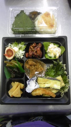 今回のお弁当はちょっと違うバージョンで試作してみました。おかずを多くご飯はおにぎりで!!!!!!おばーちゃん特製ポテトサラダ ピーナッツ味噌 プチトマトのスコッチ風 2日熟成結び昆布 やまふきの佃煮 竹の子のピリ辛煮 香草パン粉焼き 近所の農家さんから頂いたナスと大葉の天ぷら 海老の天ぷら みそ焼きおにぎり しそ巻きおにぎり もりもりのおかずたくさん弁当です