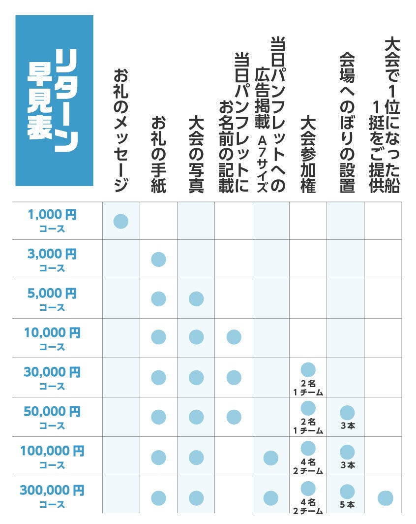 ・大会で1位になった船1挺プレゼント