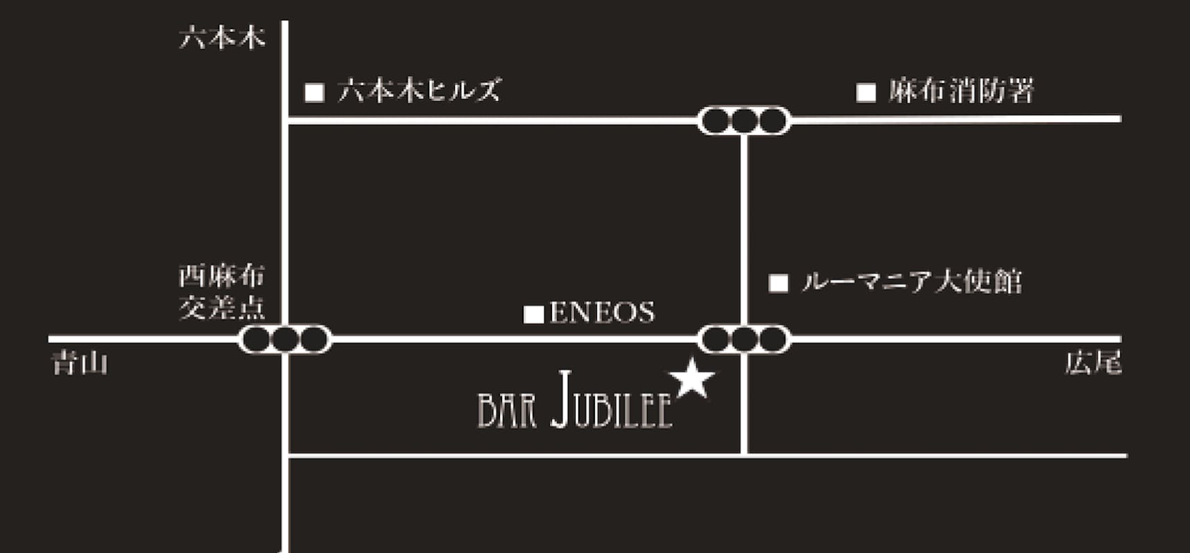 西麻布のなだらかな坂に佇むBAR Jubileeでございます。
