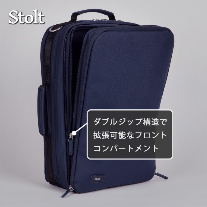 「Stolt Podium」はブリーフケース、ショルダーバッグ、バックパックの3WAY機能を備えています。通勤以外にも広い用途でデイリーに使っていただける、アクティブなビジネスパーソン向けのマルチバッグ。オフィスへの通勤からジムセッションまで、忙しい日々を過ごすアクティブな方へ向けてデザインしました。