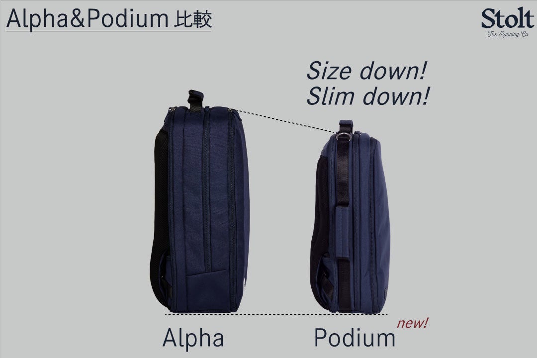 Alphaと比べ、今回の「Podium」は35%ほどサイズダウンしています。コンパクトになったことでAlphaだと大きすぎると思われていた方など、様々な体格の方にもフィットするようになりました。それでいて毎日の持ち物を持ち運べる容量は保たれています。