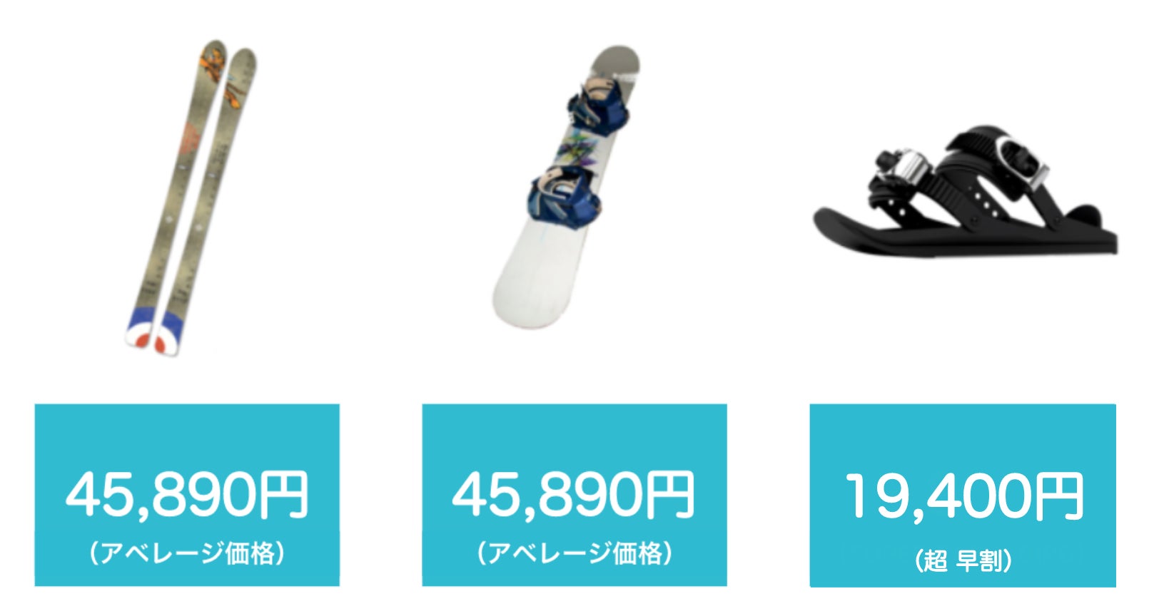 スノーフィートは、スキーやスノーボードに比べて、すべての装備品がリーズナブルです。
