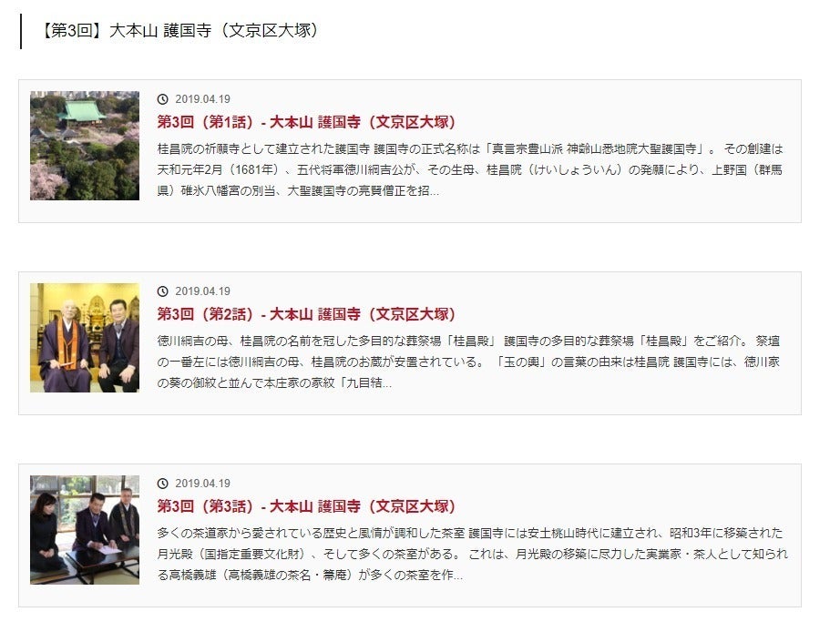 番組の詳細は、東京23区の撮影協力してくれるお寺さんを中心に