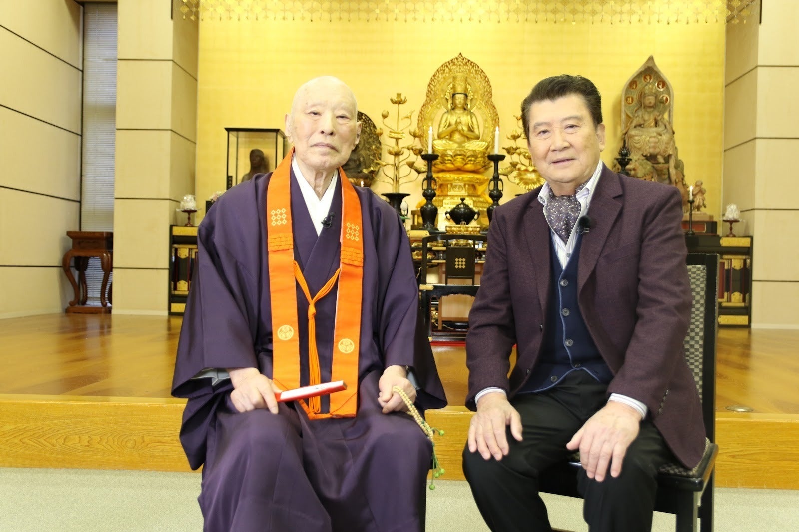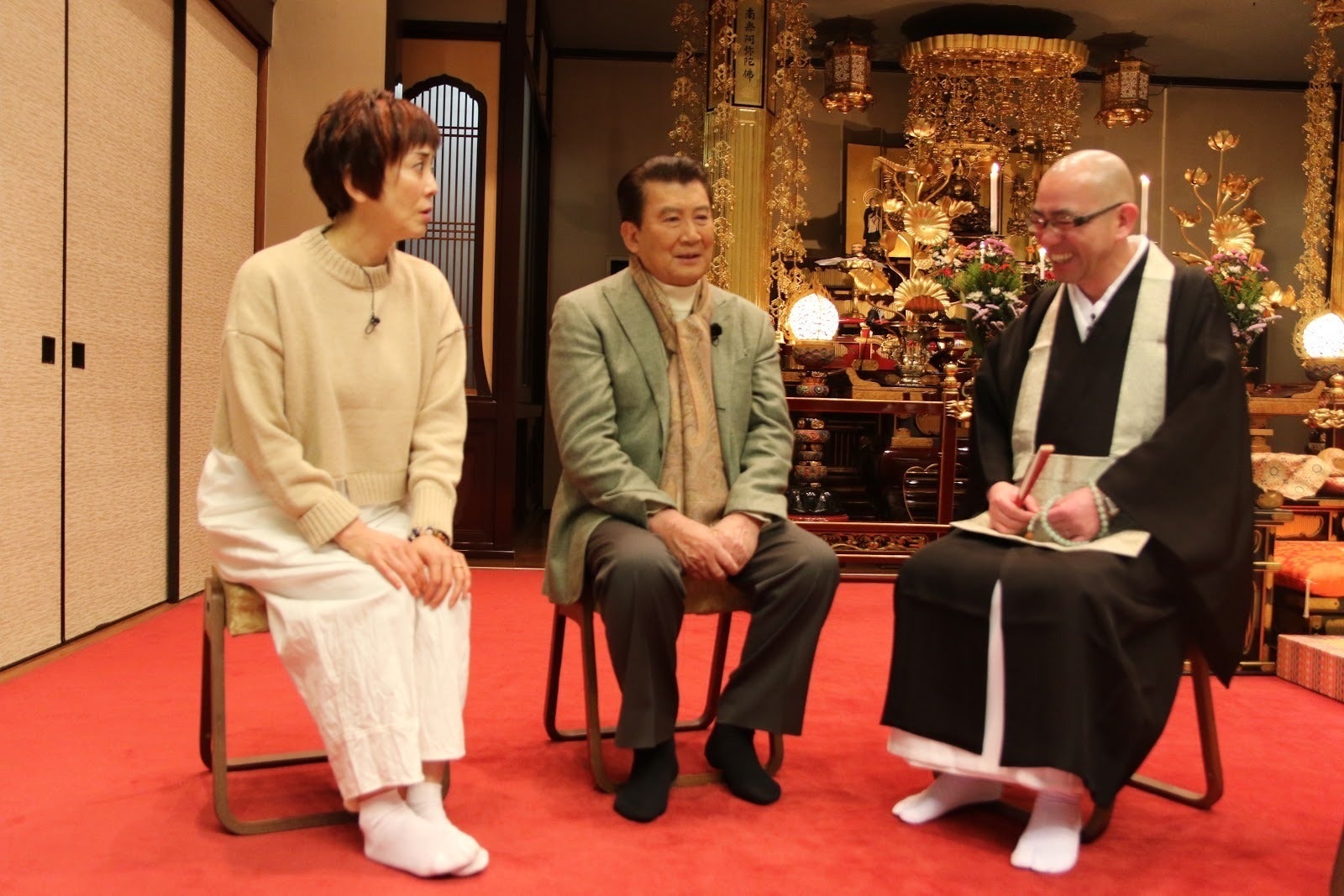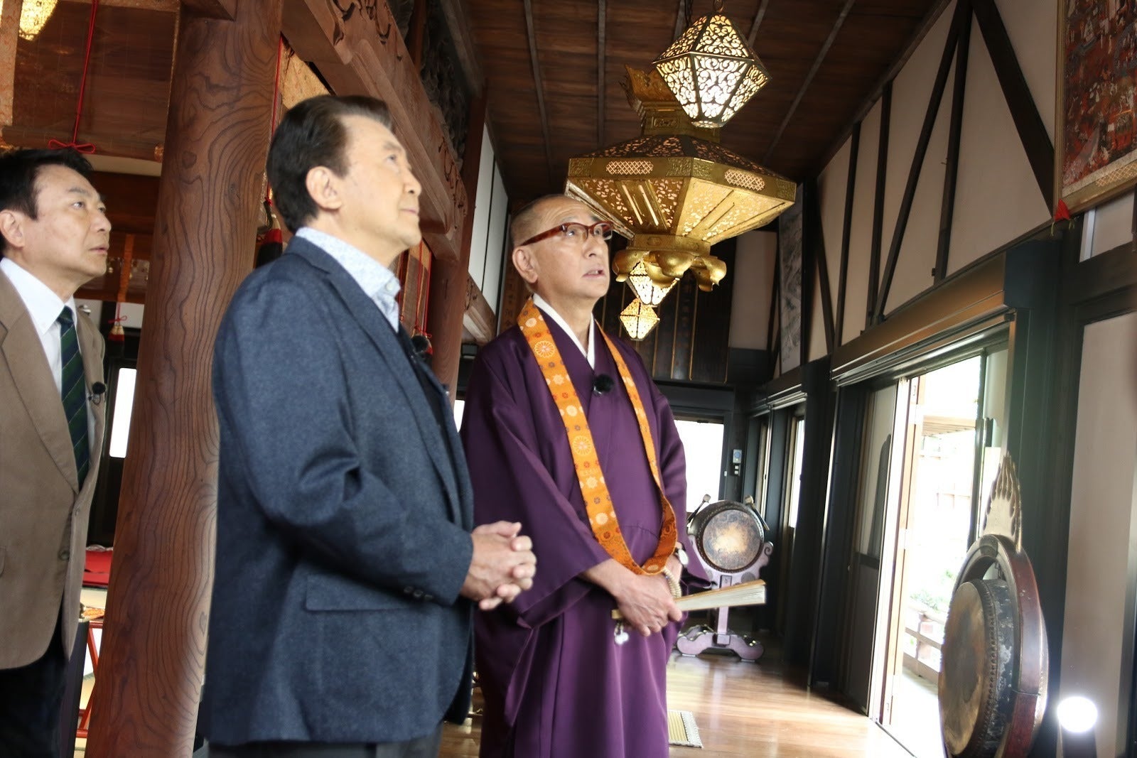 訪問先のお寺さんでは、里見浩太朗さんとゲストさんがお寺の本尊やお寺の建物、