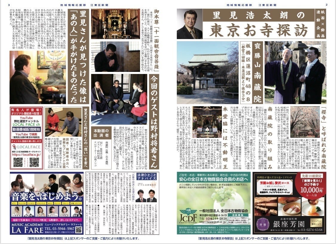 ▼東京23区新聞ダイジェスト記事 連動『里見浩太朗の東京お寺探訪』第一話 南蔵院