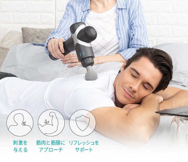 体をリラックスさせるのみならず、筋膜への刺激によるリフレッシュに使える、ポータブルなセルフケアマシンです。