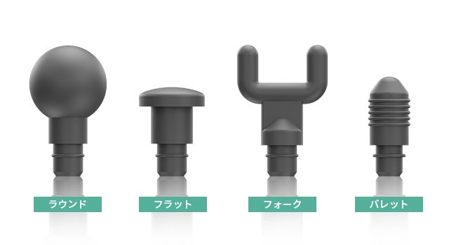 ラウンド、フラット、フォーク、バレットのアタッチメントが付属しています。主要な筋肉グループ、小さな筋肉部分、首と背中、そして関節など体全体的に使うことができます。必要に応じて圧力をかけながら、目的の部分を目的の速度で押し、刺激します。
