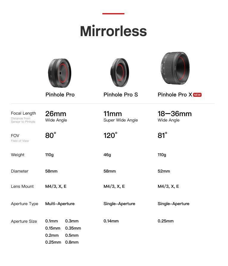 Pinhole Pro X for Mirrorless(ミラーレスカメラ用:焦点距離19mm〜35mm)