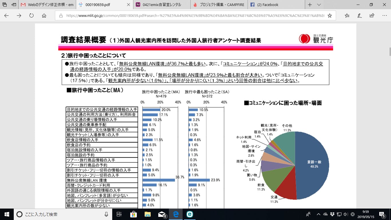 実際観光庁のデータでは日本に訪れて何が一番不便?だったかということで半分の方が言語と答えております。